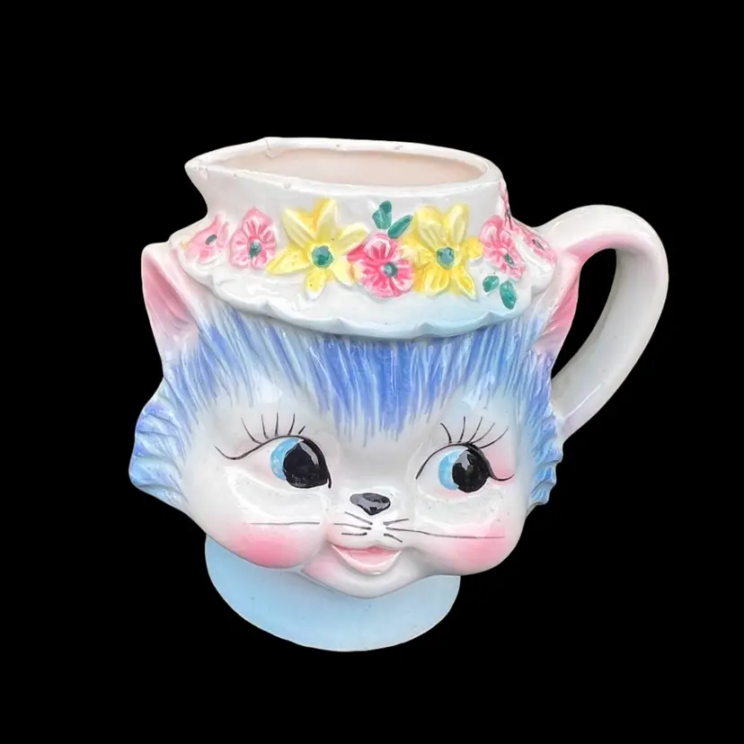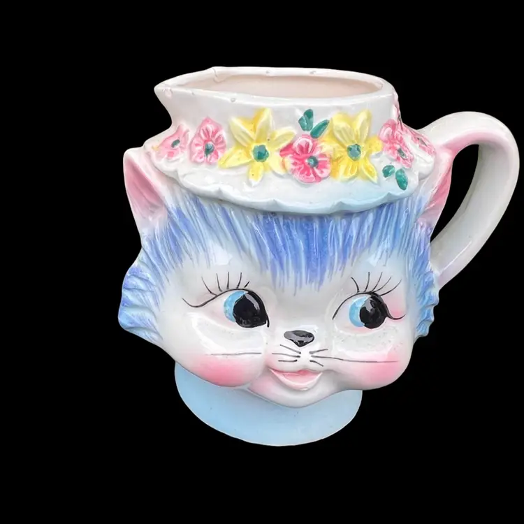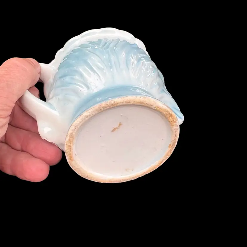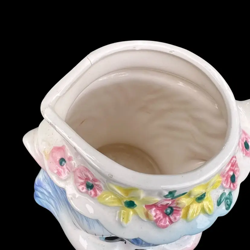 Side view eyes Approximately 4” tall Minor chipping around the rim and back. No cracks A great display piece No label See all photos