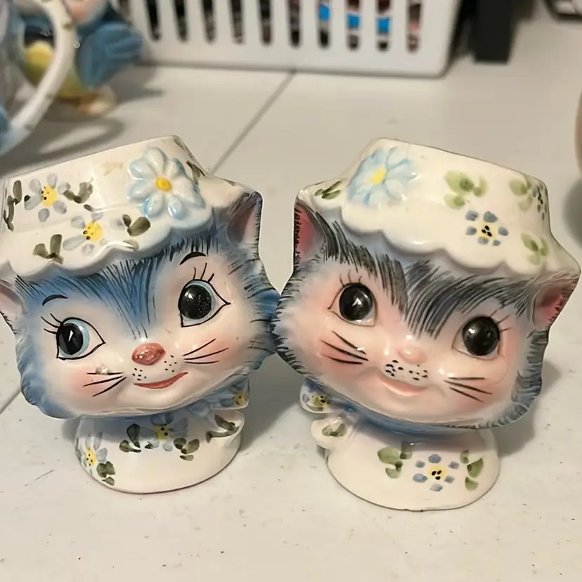 Vintage Lefton Miss Priss Kitty Cat Salt and Pepper Shakers Made in Japan #1511. Condition is pre-loved and nice. For the age, those are in great condition without chips. Both shakers have some crazing in the glaze probably from storing it in my China cabinet (I did open the doors as Dr. Lori suggested and still happened). They measure approximately 3x3x3".