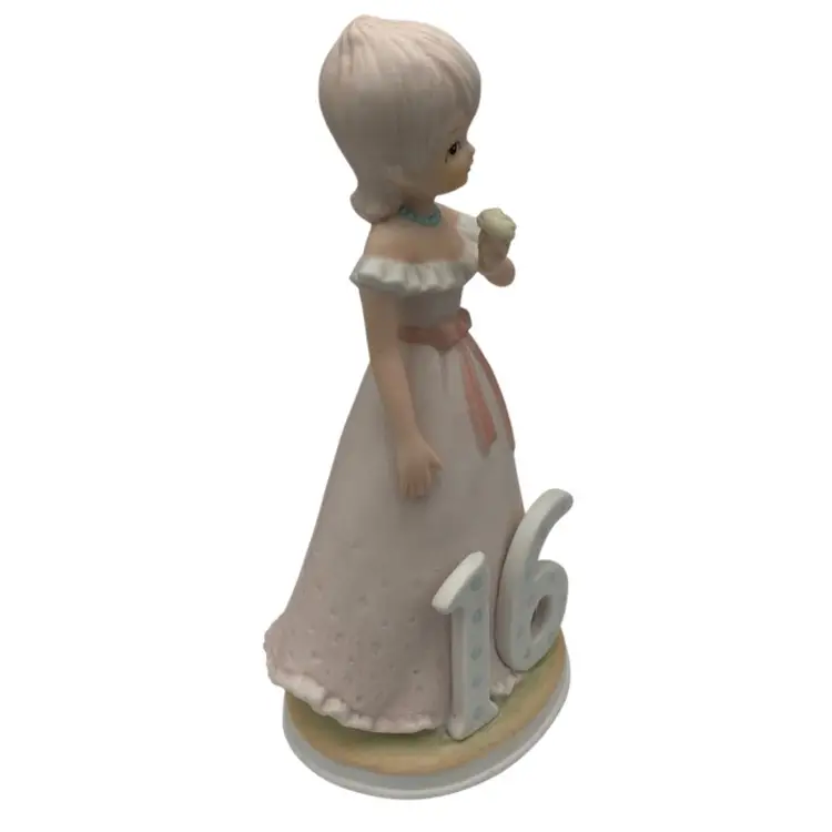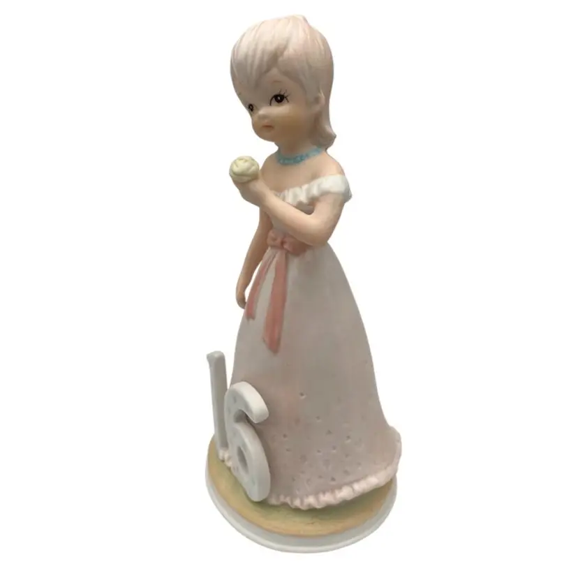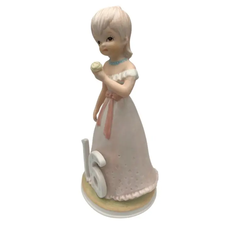 Celebrate a special milestone with the vintage Lefton porcelain Christopher Collection figurine, featuring a charming representation of a young woman aged 16. This hand-painted figurine, bearing the model number 03448/P, is a delightful addition to any room, bringing a touch of nostalgia and a warm, timeless appeal. Crafted from fine porcelain and completed with a matte finish, the piece measures 6.5 inches in height, 3.4 inches in length, and 2.6 inches in width, making it a small yet visible accent that fits comfortably on any shelf or table. Created in 1983, this original collectible from the late 20th century is a testament to the artistry of the era and is sure to be a memorable gift for any birthday celebration.