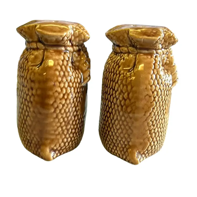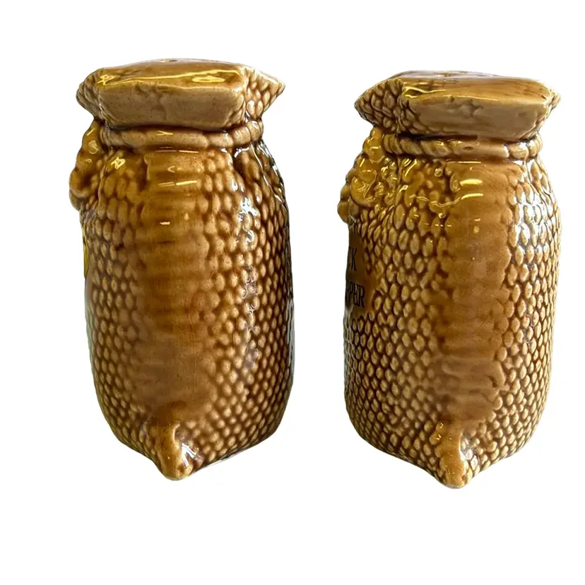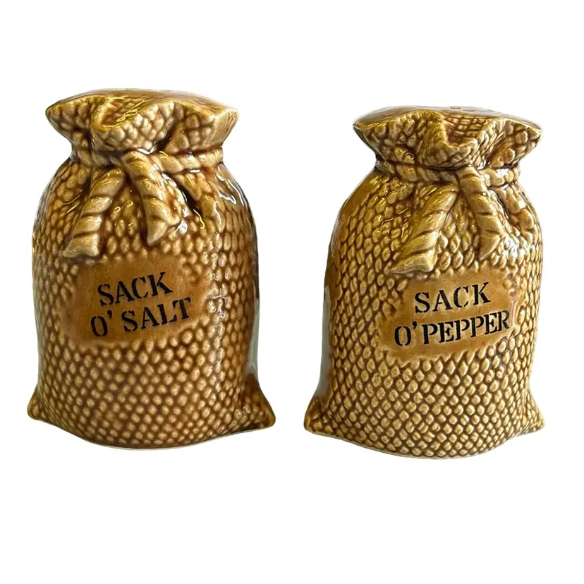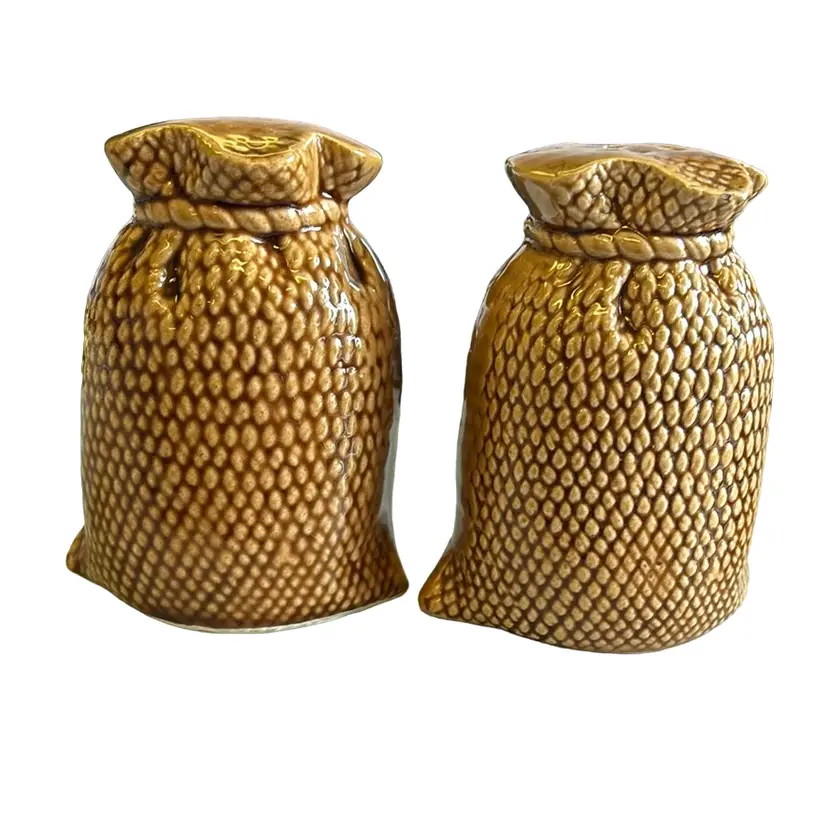 Add a touch of rustic charm to your kitchen with these vintage Sack O' Salt and Pepper Shakers. Perfect for collectors or anyone looking to spice up their table setting.