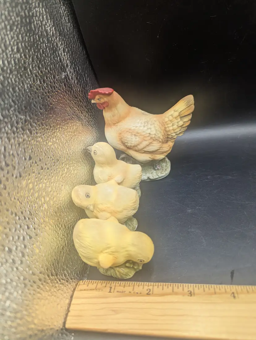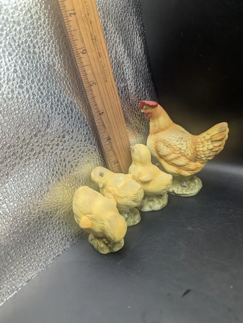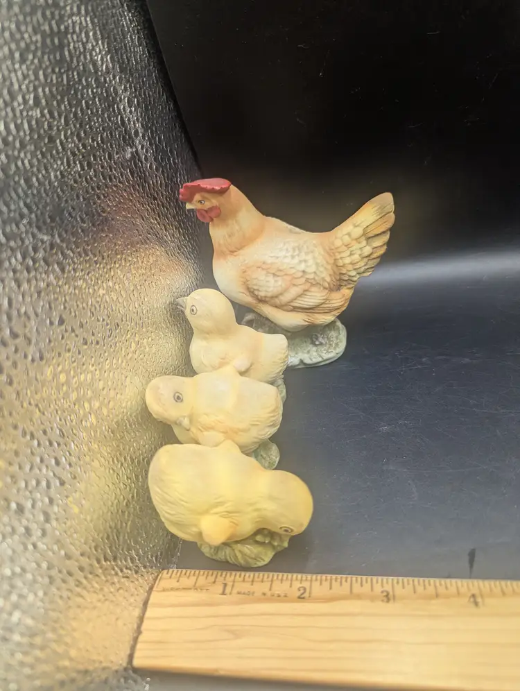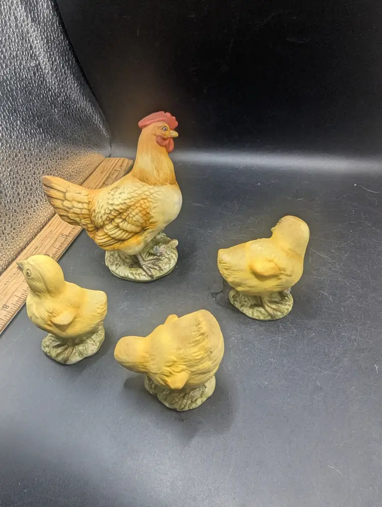This is a fantastic Vintage Lefton Set Of 4 Hen And Three Baby Chicks KW1997 all in excellent used condition. No chips or cracks. Please see all pictures for condition and measurements.
