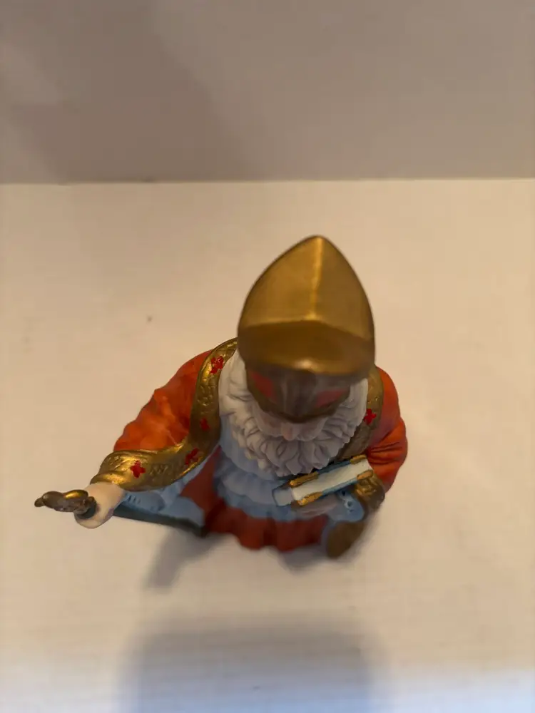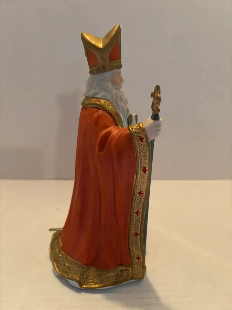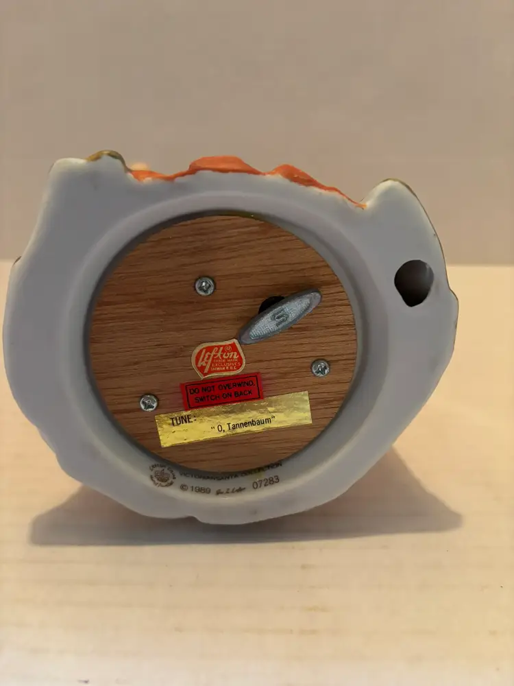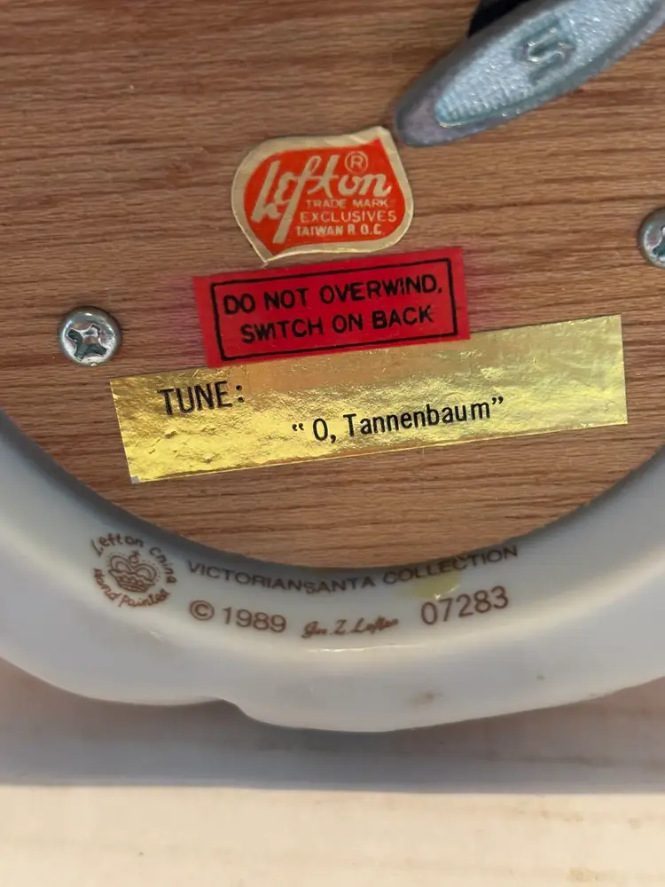 The Vintage Lefton Victorian Santa Collection Musical St. Nicolas Figurine #07283 is a beautifully crafted collectible figurine perfect for Christmas enthusiasts. Made of porcelain. Made by the renowned brand Lefton, this medium-sized figurine features a Victorian Santa theme with a festive multicolor design. The unique feature of this figurine is that it is musical, playing O'Tannenbaum, a charming tune that adds to the holiday cheer. The matte finish gives it a vintage feel, adding a touch of nostalgia to any Christmas decor collection. The musical feature does work, but I did not wind it all the way because I did not want to overwind. Does come with the original box.