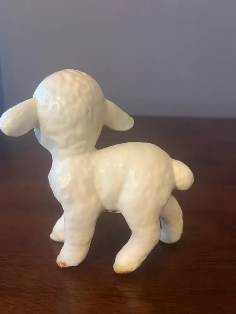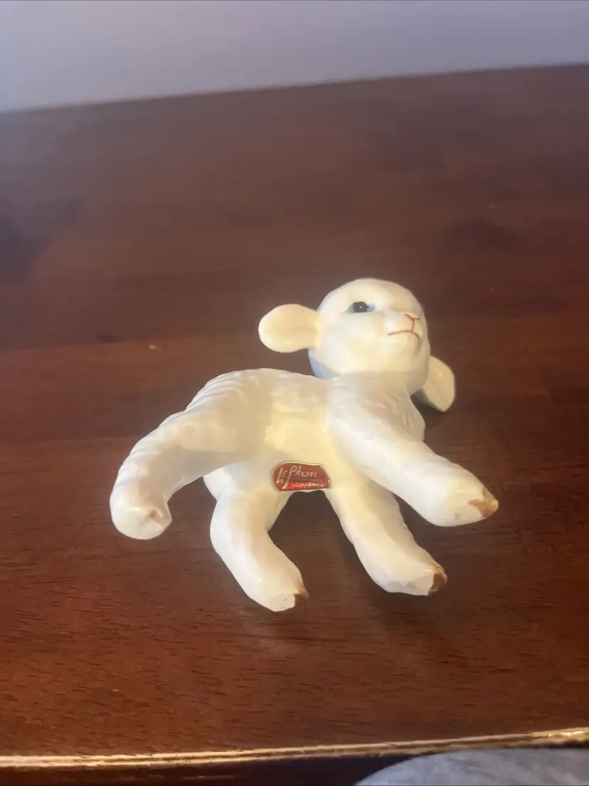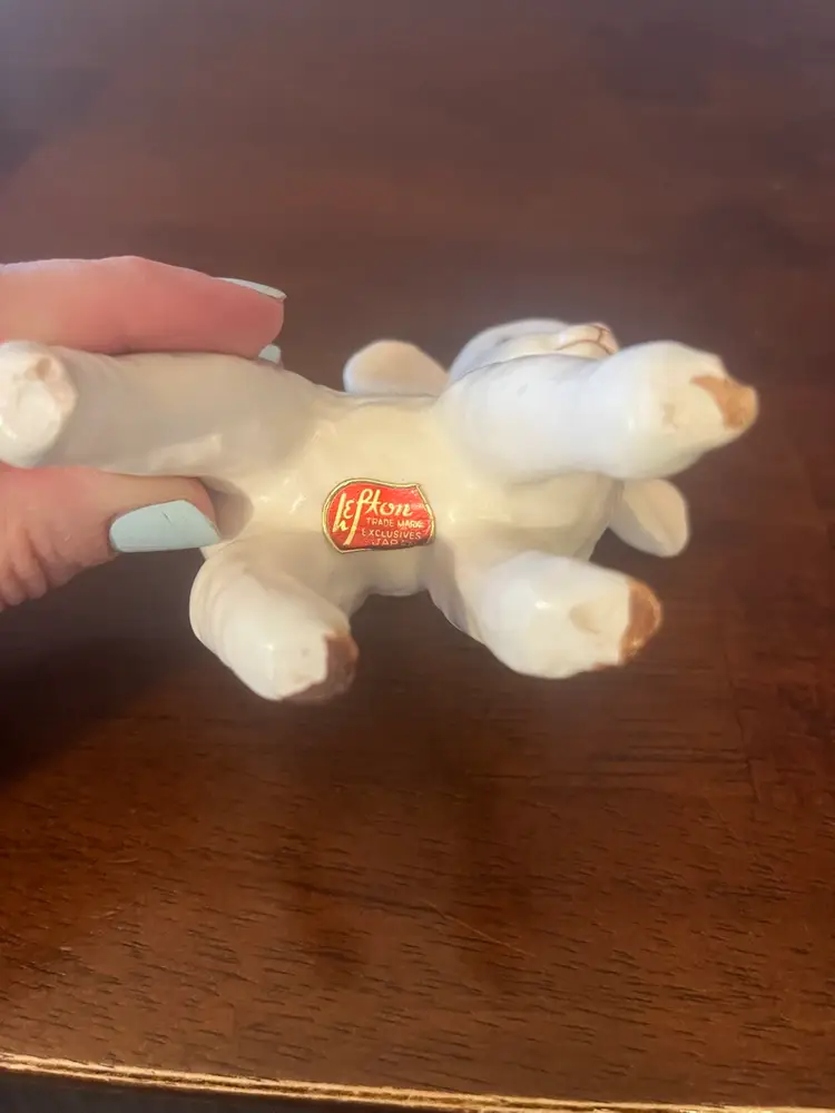 Lefton, a brand established by George Zoltan Lefton in 1940, became well-known for its porcelain and ceramic collectibles, often featuring charming animal figures, children, and decorative tableware. These items were typically produced in Japan and distributed throughout the United States, becoming popular gifts and decorative accents in homes. Many Lefton pieces are marked with a red and gold foil label, similar to the one visible on this figurine.