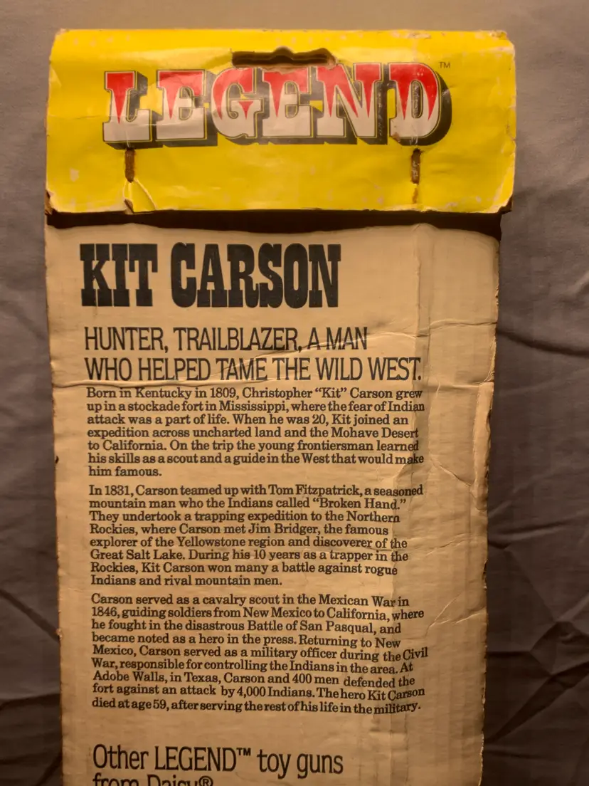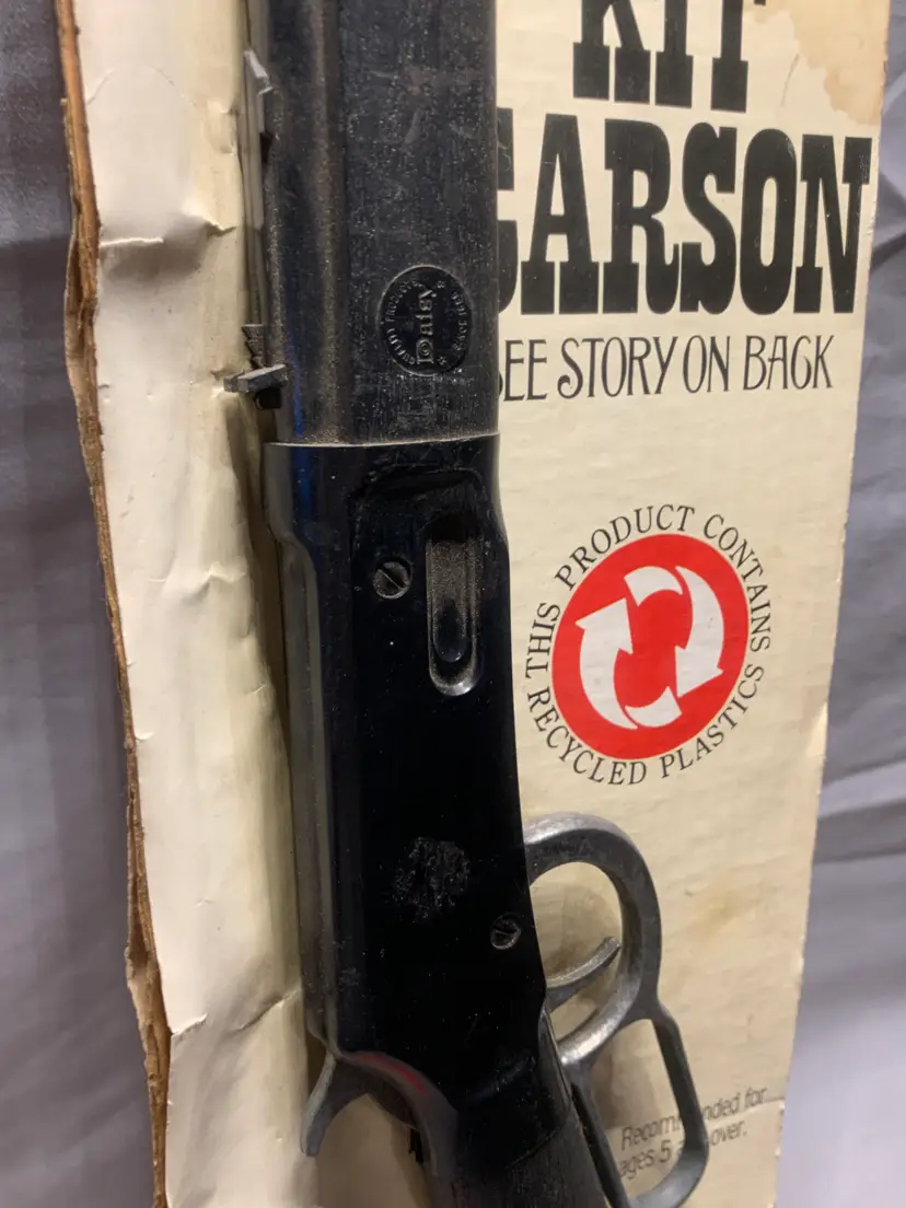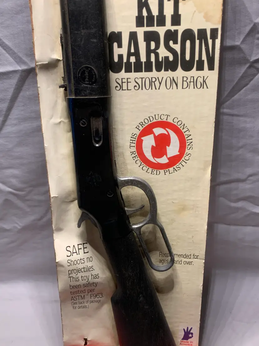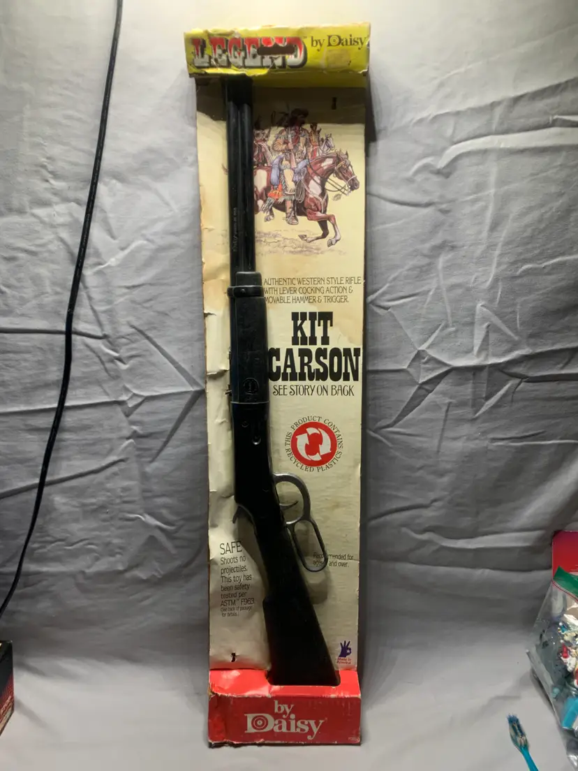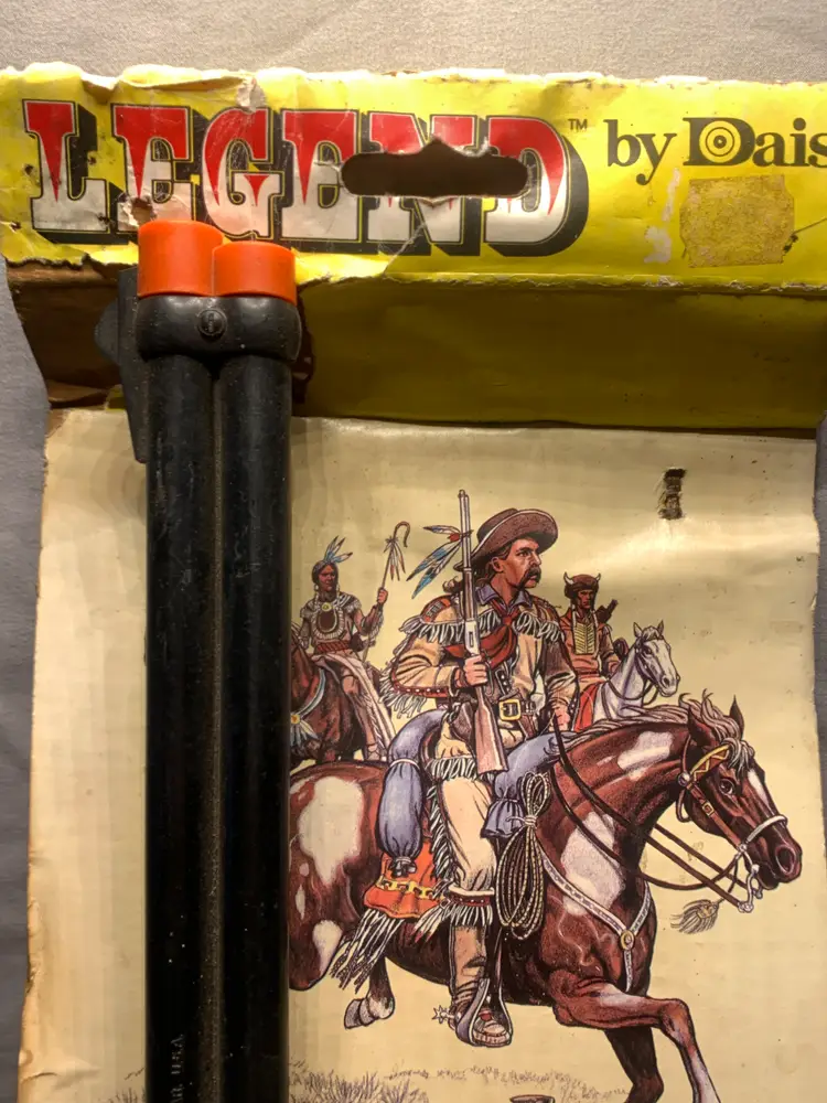 This Vintage Legend by Daisy Kit Carson Western Style Toy Rifle is a rare and unique collectible item that evokes the spirit of the American West. This toy rifle, made by the renowned brand Daisy, features a cowboy and western theme, embodying the adventurous spirit of the Kit Carson character family. With its vintage charm and origins in the United States, this toy rifle is a coveted piece for collectors and enthusiasts of cowboy and western memorabilia.