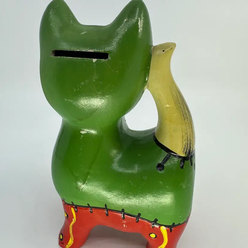 Approx 6.5” tall, has wear due to age including paint loss. No chips or cracks