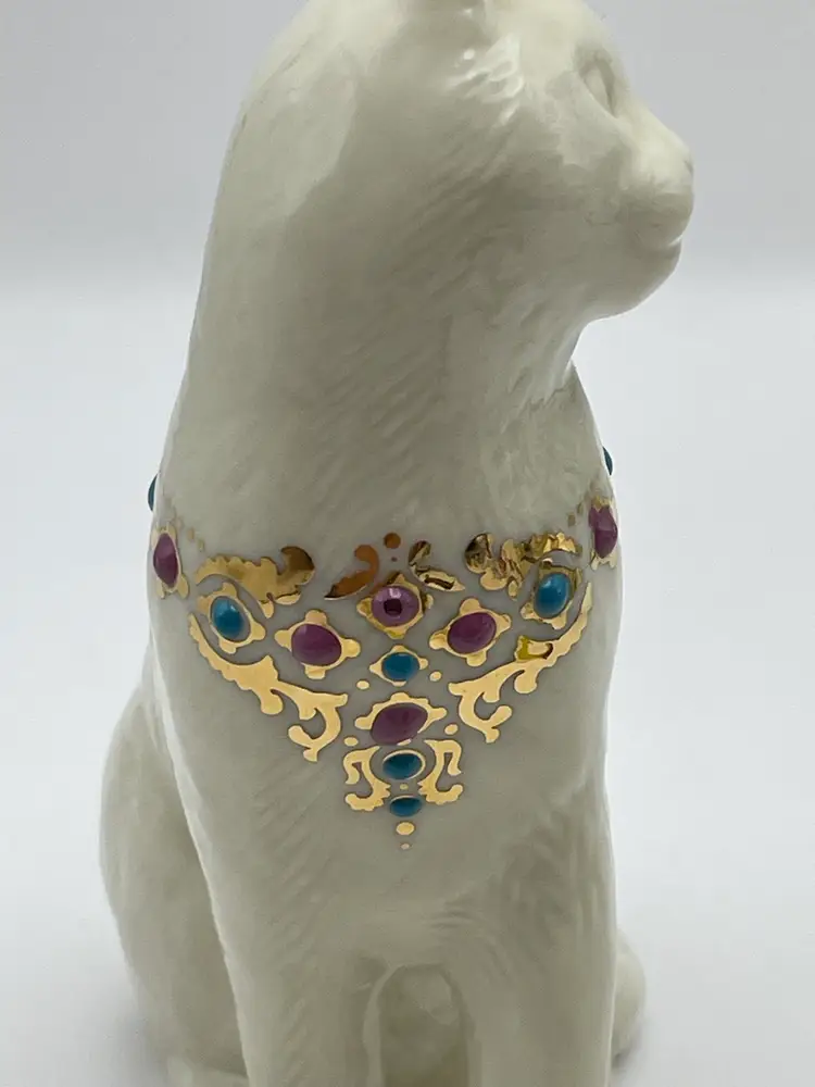Vintage Lenox China, “Jewel Collection”, White Cat/Kitty, Pink/Blue/Gold, Made in USA.