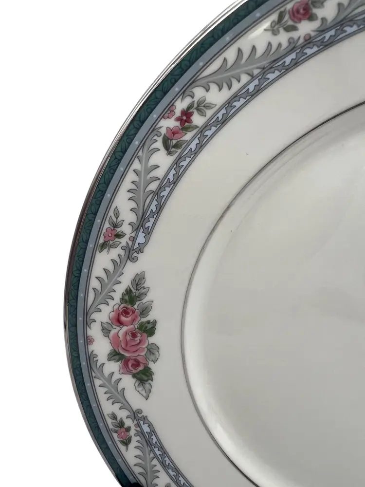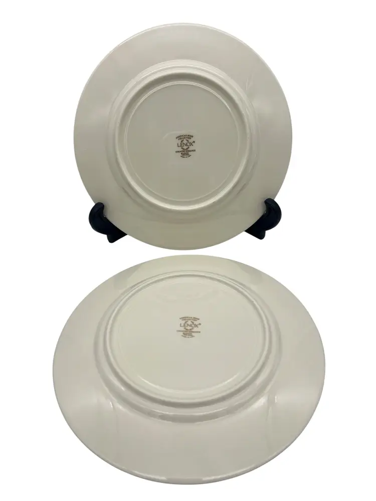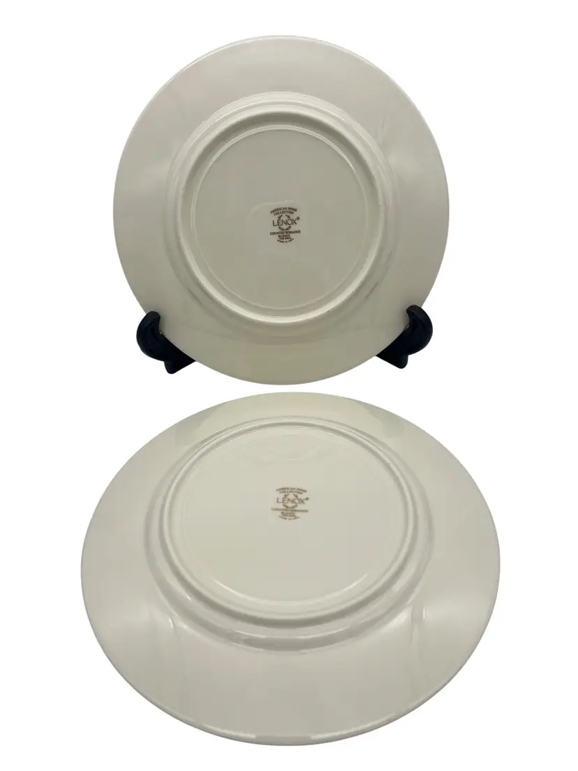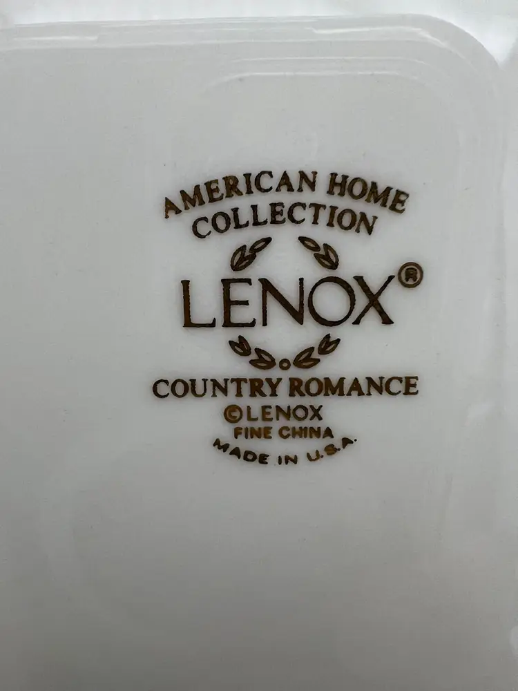 Features: • Type: Salad Plate • Maker: Lenox • Pattern: Country Romance • Pattern Description: Green Bands, Pink Roses, Gray Leaves, Platinum Trim • Size: 8" • Made in USA • Weight: 10.9oz each • Years Made: 1992 - 2000 • Current Status: Discontinued