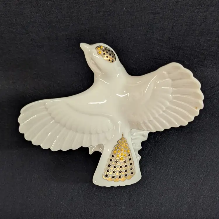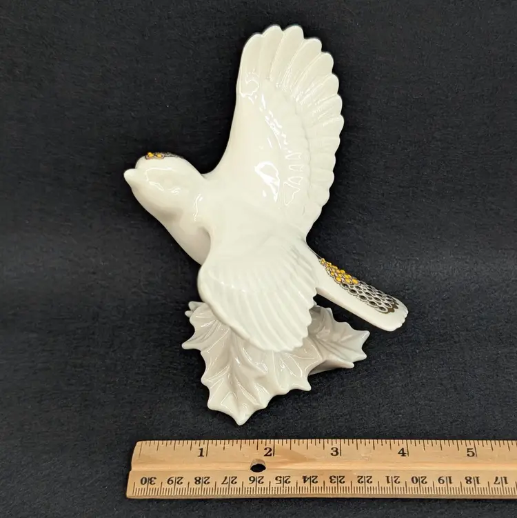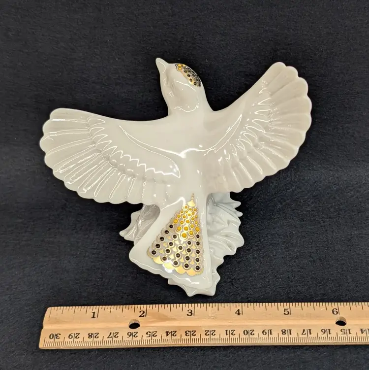 Lovely, flying bird with yellow, black and gold detailing on its head and tail. In nice, vintage condition and it comes with its original box. Measurements ~ 4 x 4.75 x 5.5"