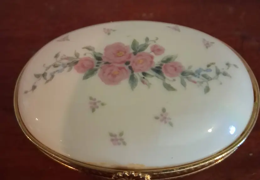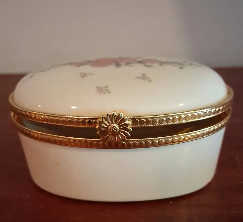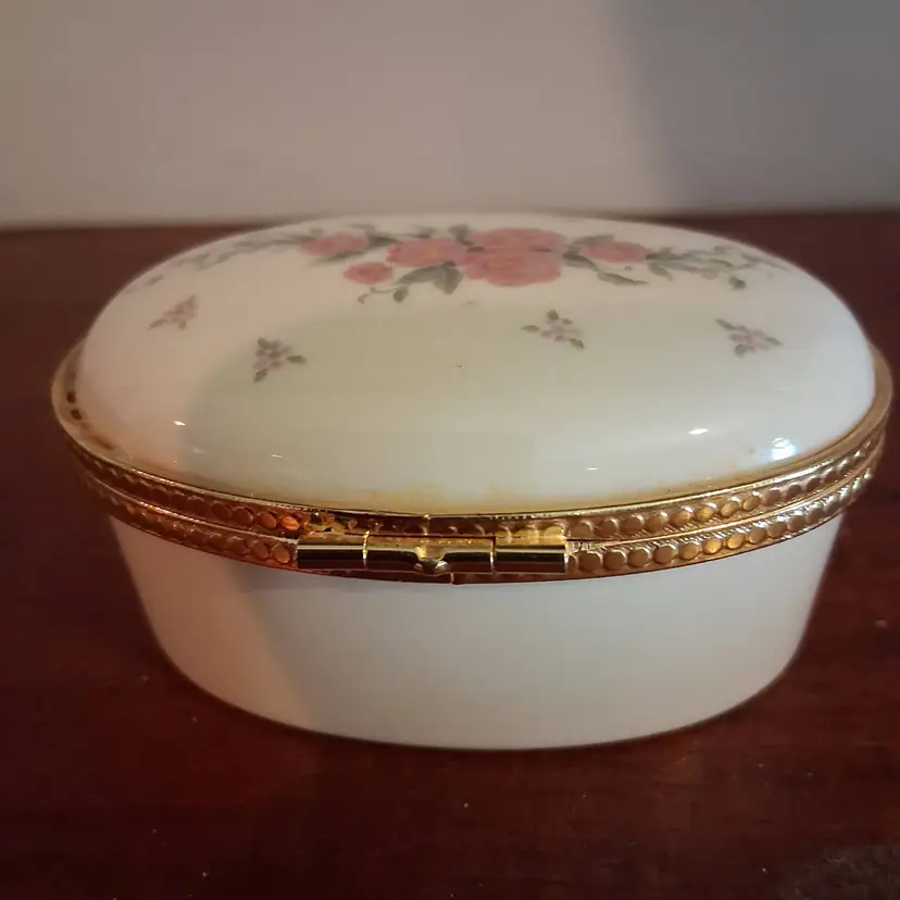 Vintage Lenox Porcelain Oval Floral Pink Rose Painted Jewelry Hinged Trinket Box