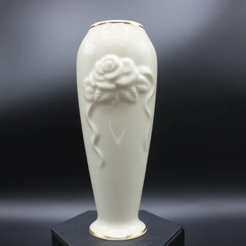 Vintage Lenox Rose Bud Collection Vase – Ivory Porcelain Embossed Rose with 24K Gold Trim – Made in USA (1984–1986)