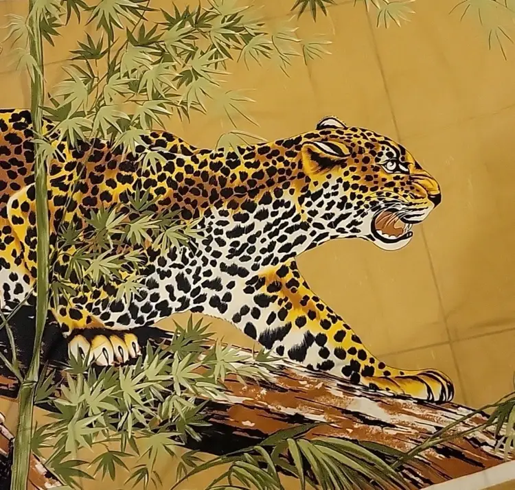 Large Italian Vintage Franco Laurenti Scaft with Beautiful Leopard Print. Super vibrant colors. has some signs of wear in pictures