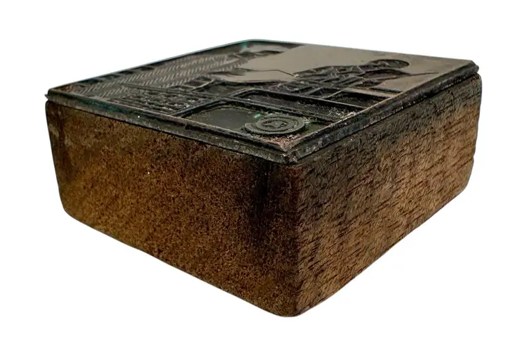 Wood and metal printers block. It has a staple on the back where a label of some kind was removed. ‘Goodman’ is written on the back.