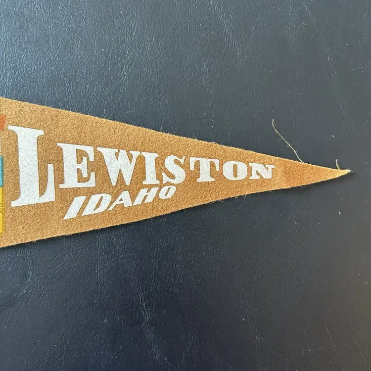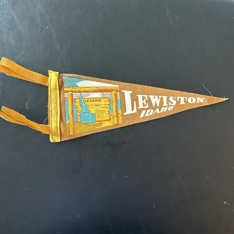 Vintage Lewiston Idaho Mustard Yellow Pennant Retro 12” Souvenir