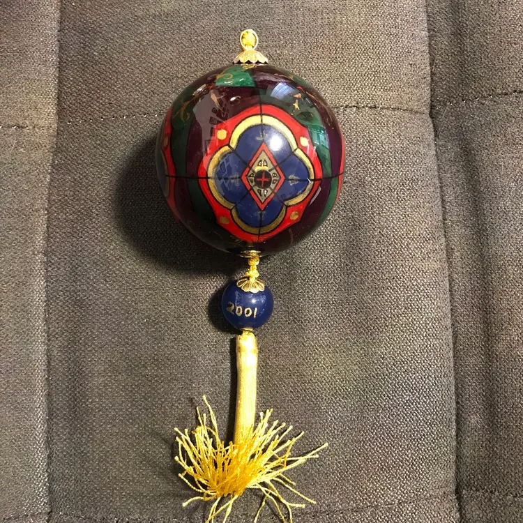 Really pretty Dated 2001 Has the insert inside explaining the long process of making this beautiful ornament