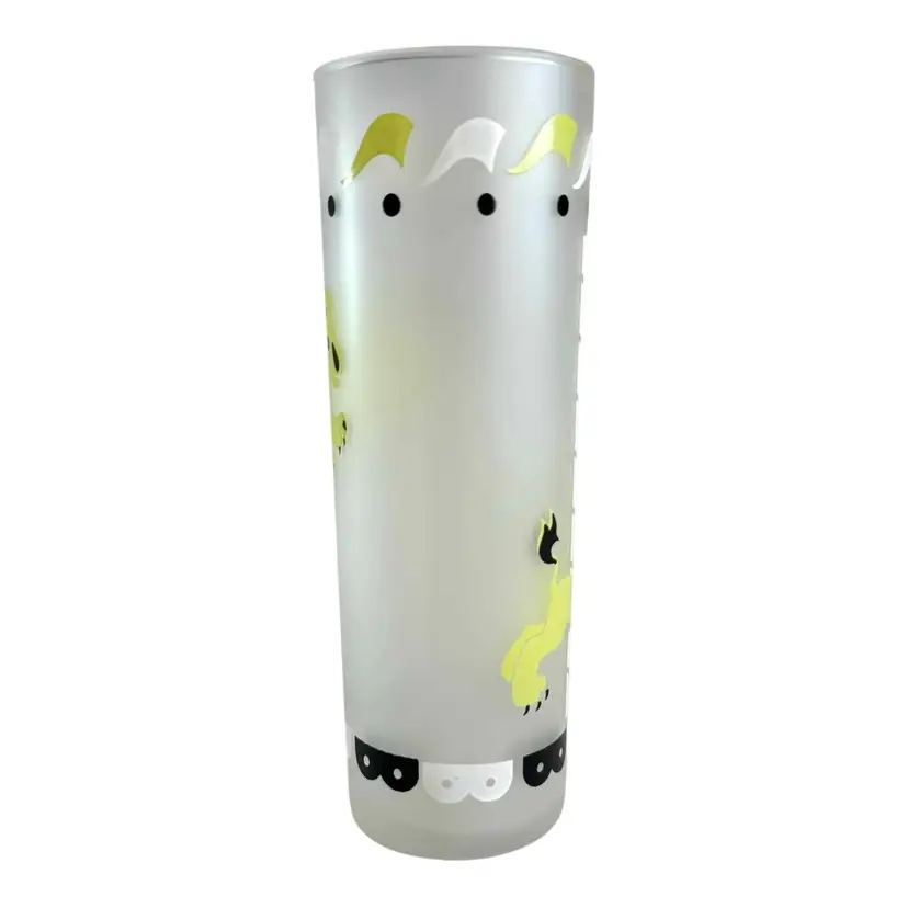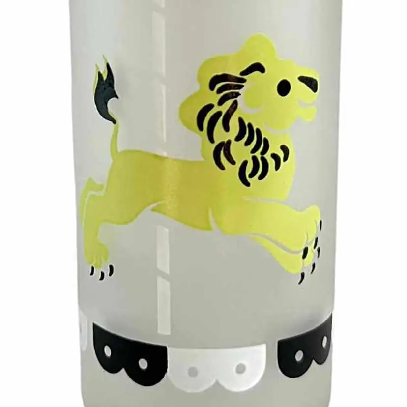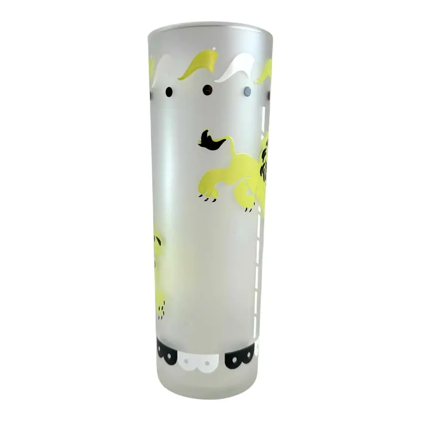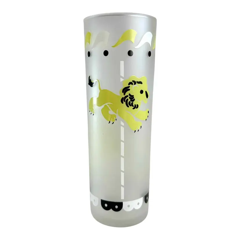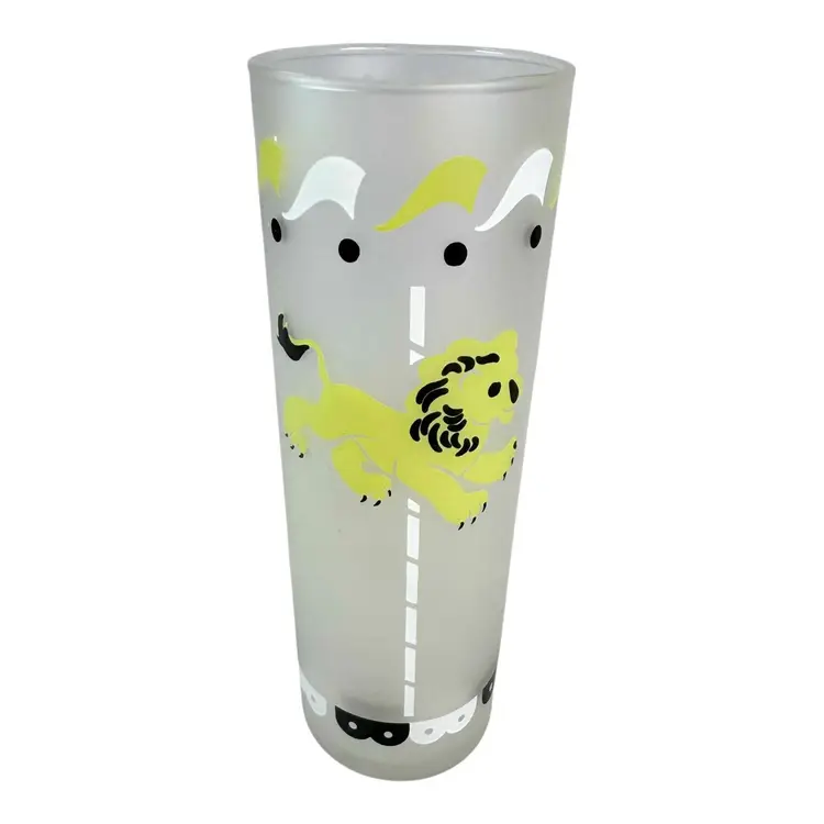 Vintage Libbey Carousel Frosted High Ball Glass 7" Yellow And Black Lion With A Black And White Design Colors Are Bright No Fading