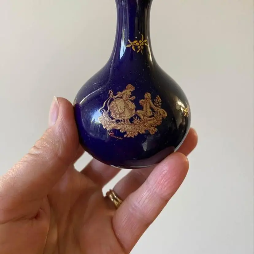this is a cute little bud vase. condition is good no problems to note. size about 2 inches wide, and 3.75 inches tall.