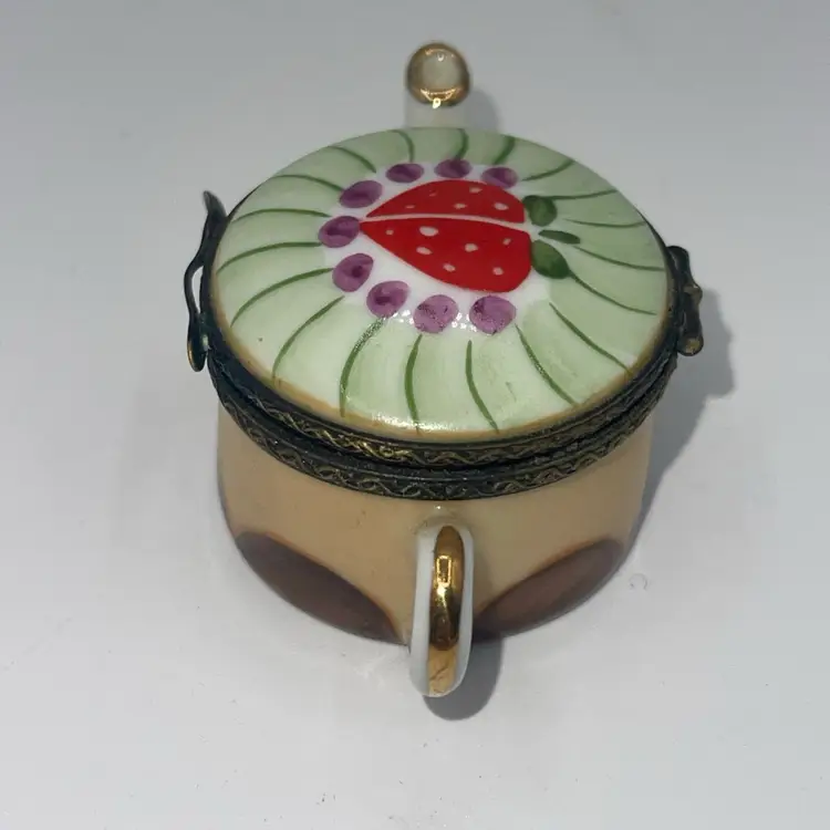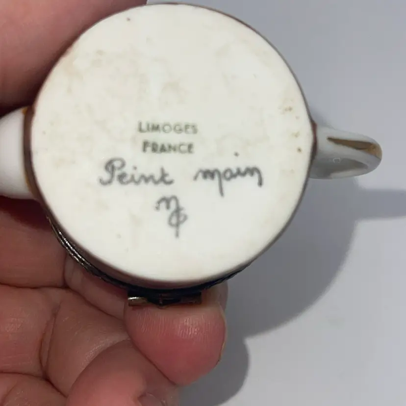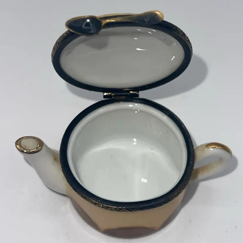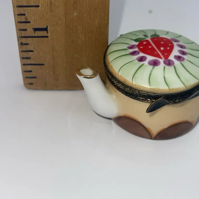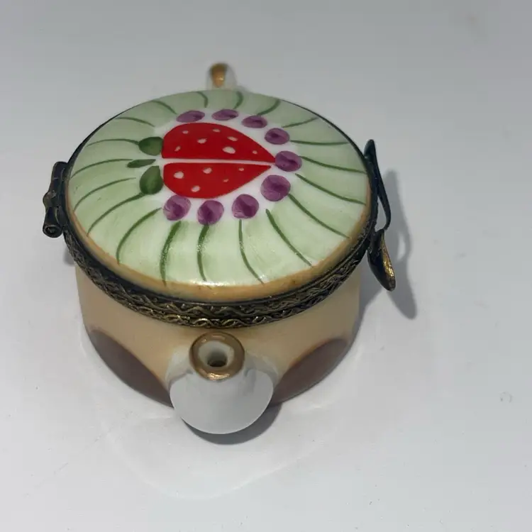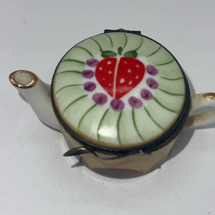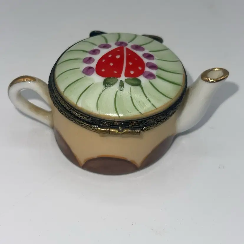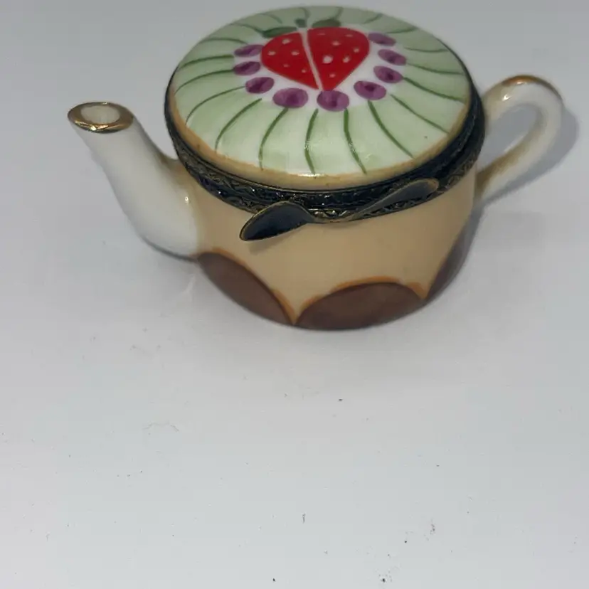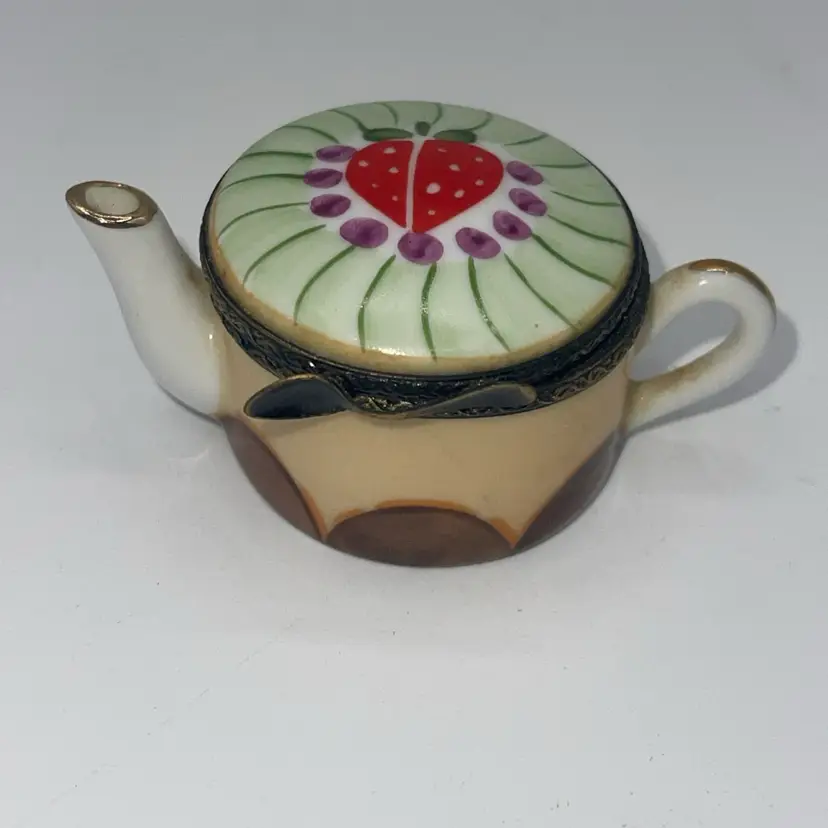 Vintage Limoges Peint Main Teapot Trinket Box France 2.75”