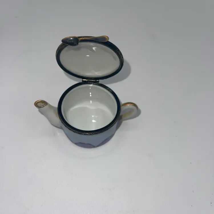 Vintage Limoges Peint Main Teapot Trinket Box 2.75
