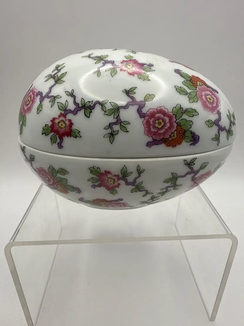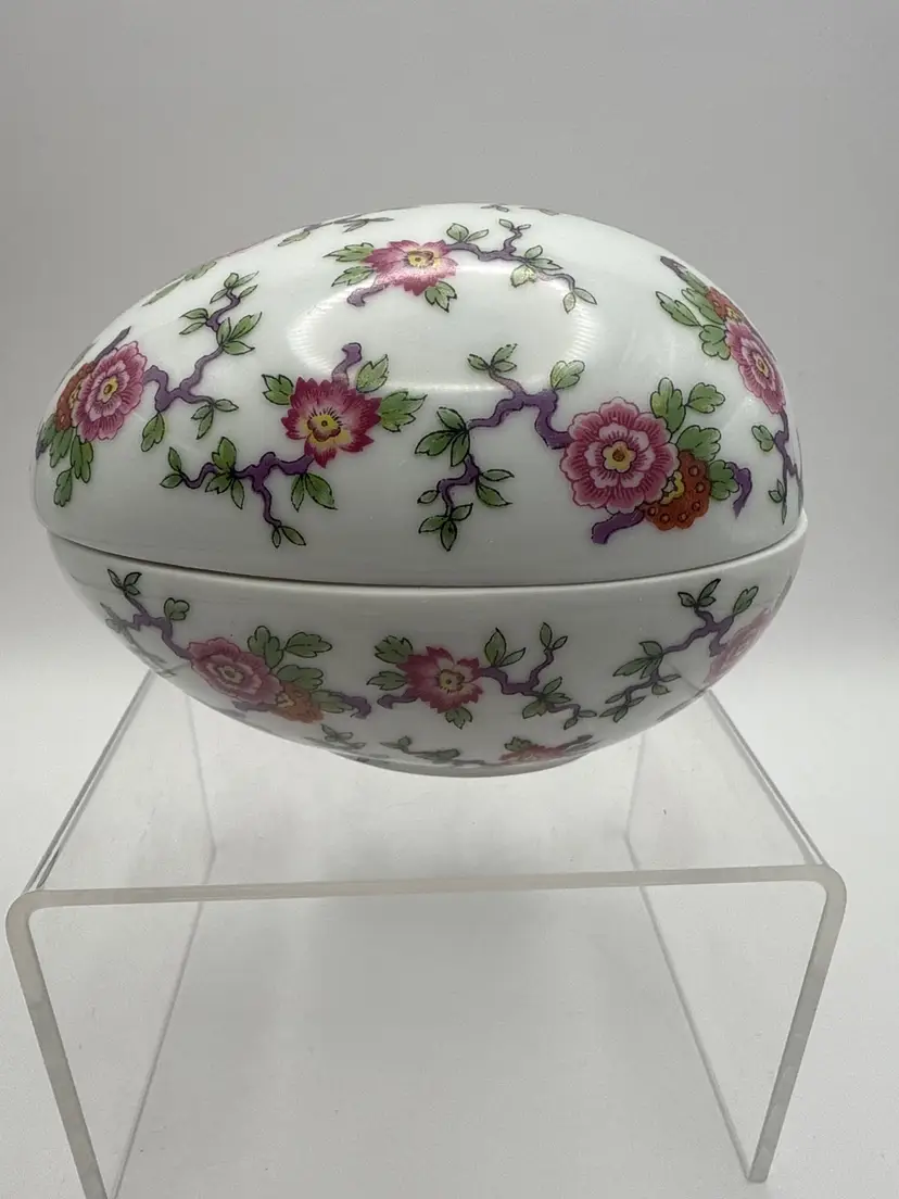 This Vintage Limoges Porcelain Egg Floral Trinket Box is in good condition. Made in Porc Leclair in Limoges France.