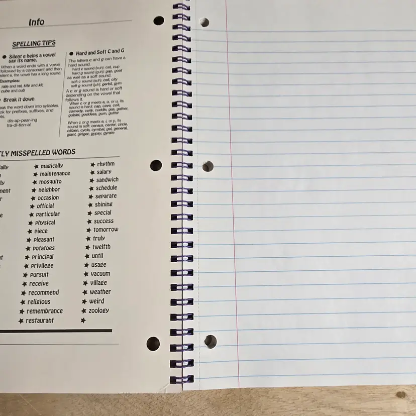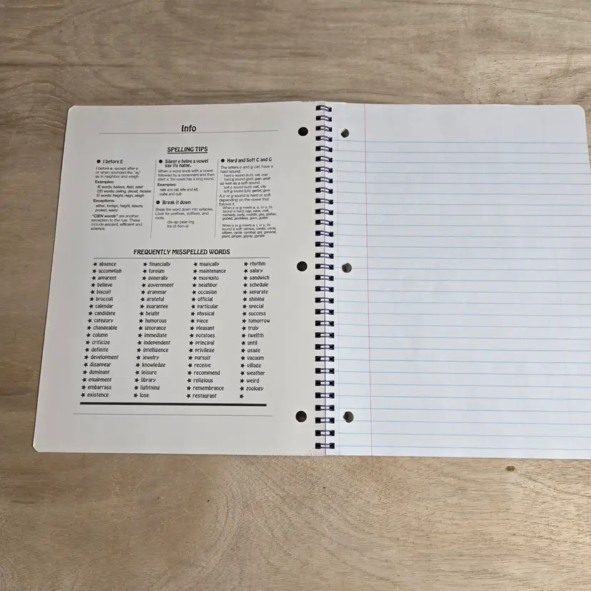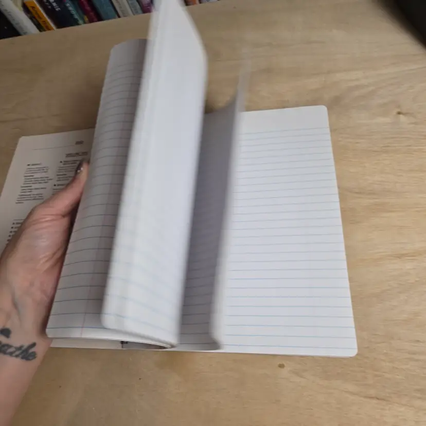 New; never used spiral bound notebook with perforated lined pages small bit of wear on cover (see picture)