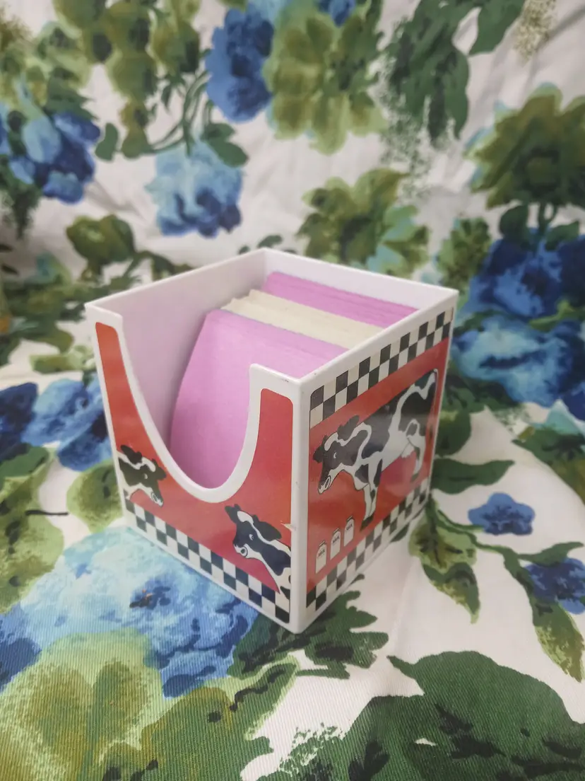Vintage Lisa Frank cow memo pad holder.