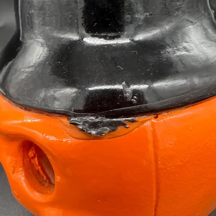 Great condition. No chips or cracks. You can see a dried glue bubble as pictured. Stands about 5” tall and 4 3/4” wide.