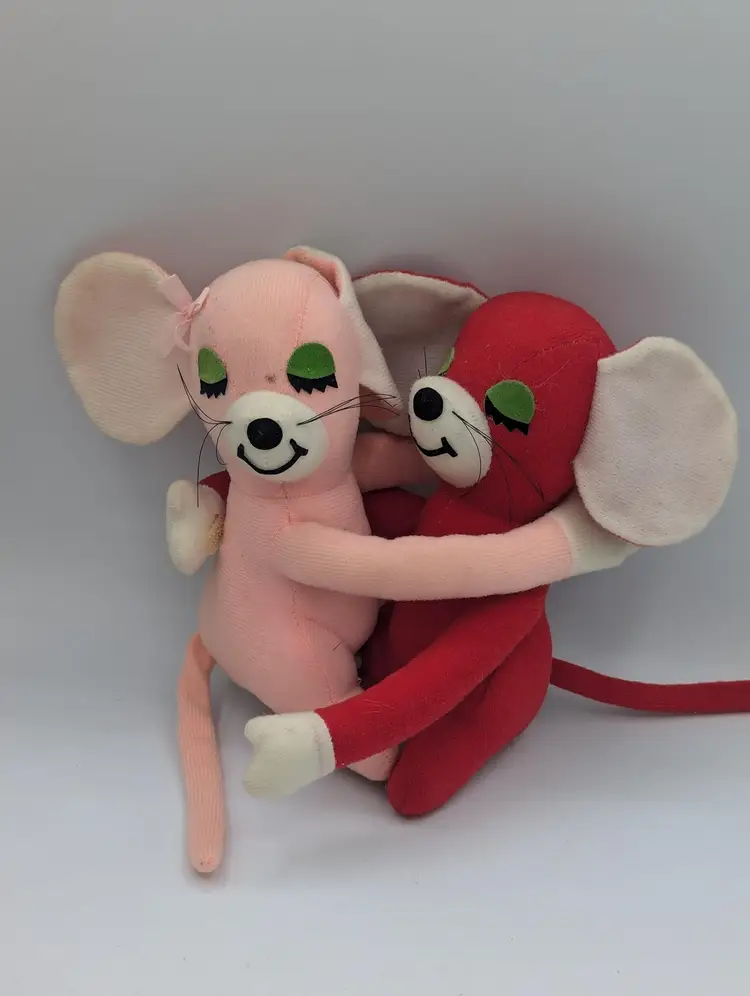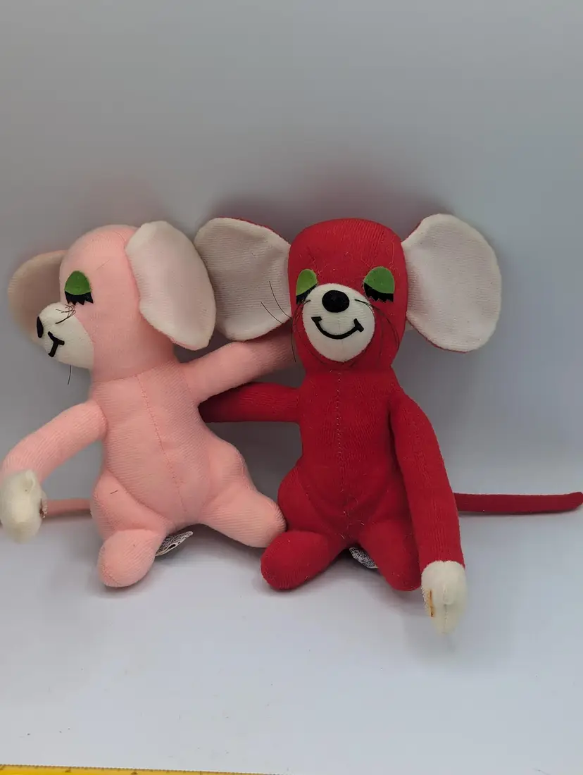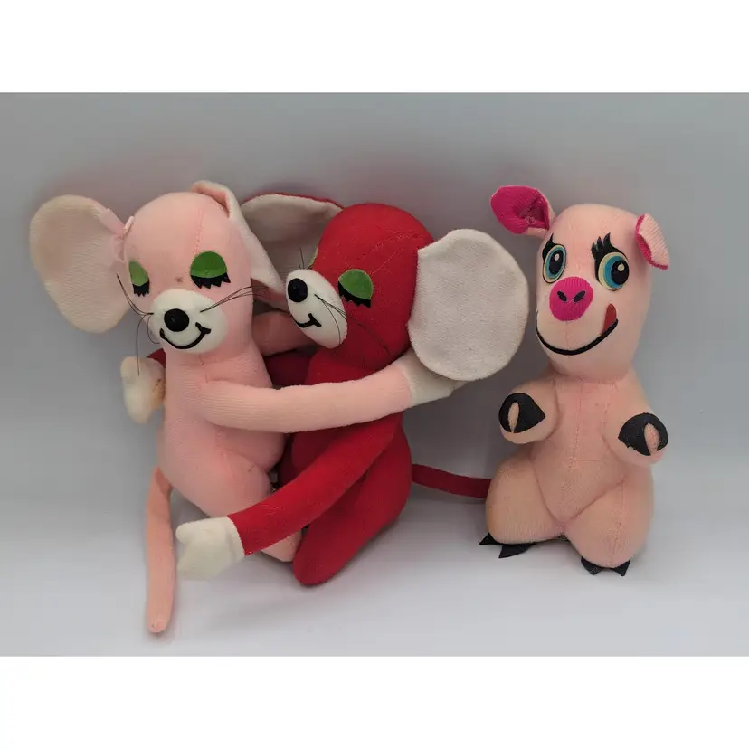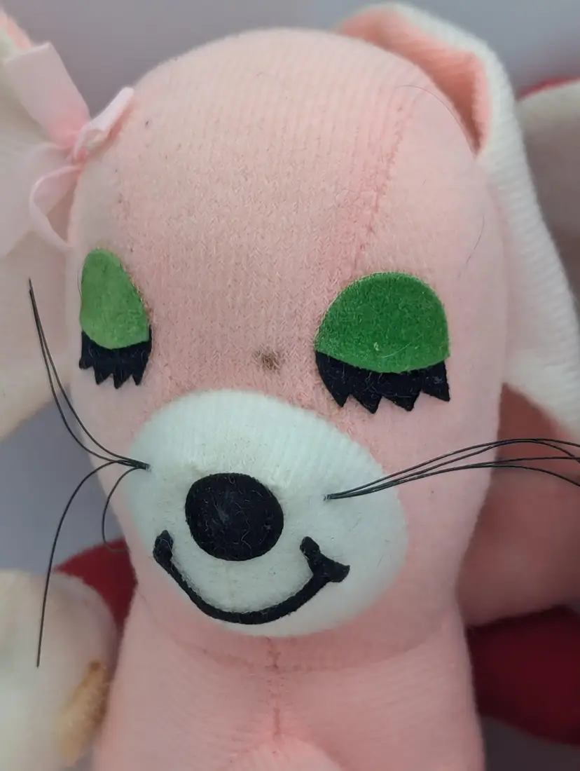 All in fairly good condition considering age. Stains and spots on all the dolls. Probably washing would get most of it out, but as I have no idea how to wash plush, I will use it to the buyer. Absolutely adorable, bright and whimsical. In my opinion, they beat any plush made today.