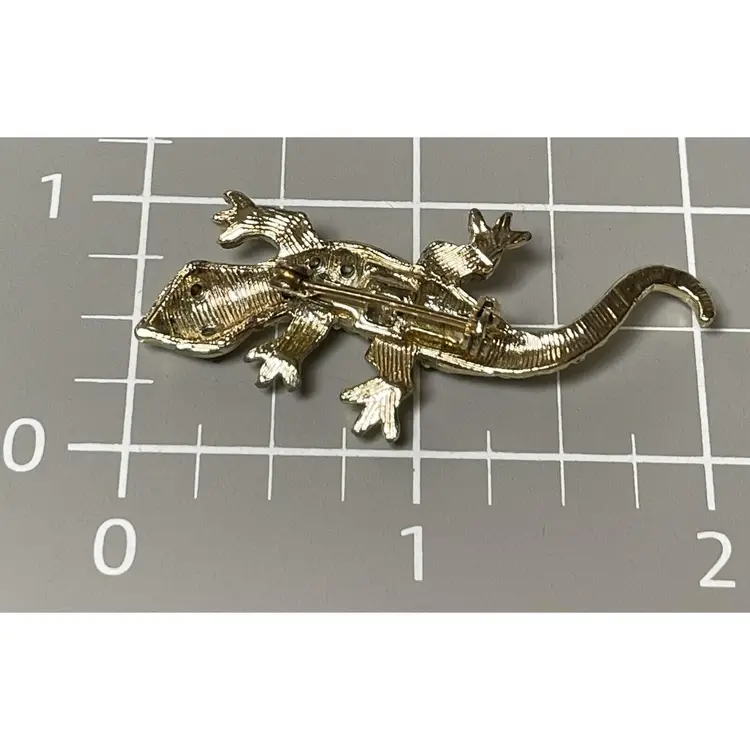 This is a VINTAGE LIZARD/SALAMANDER GOLD TONE BROOCH. It is accented with AURORA BOREALIS RHINESTONES along the body and it has green rhinestone eyes.