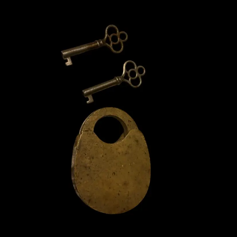 Fantastic vintage lock with keys. Lock does not open, vintage wear as seen. Lock: 2x2.75 Keys: 2”
