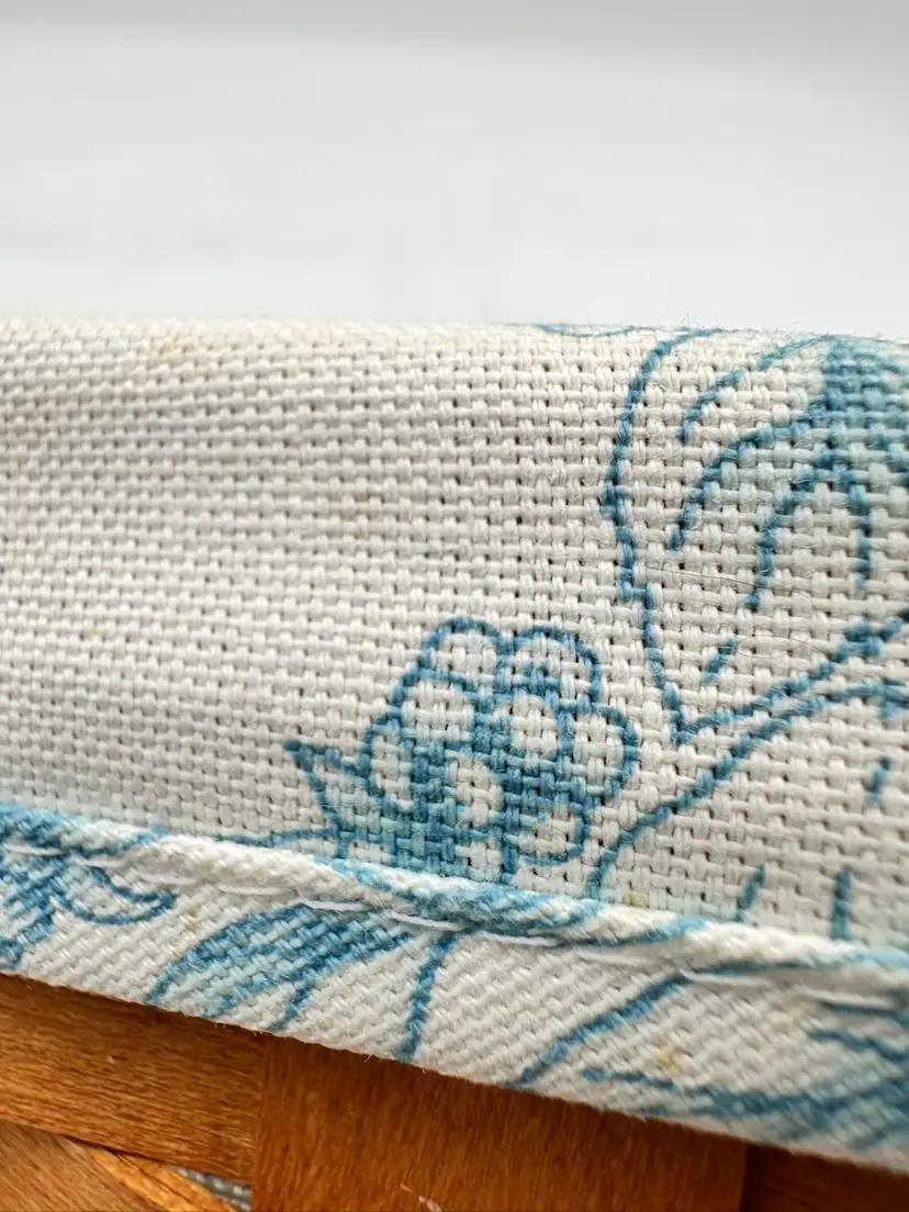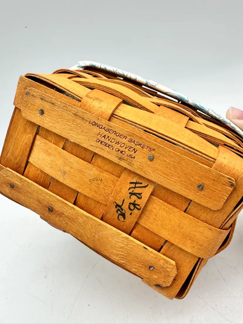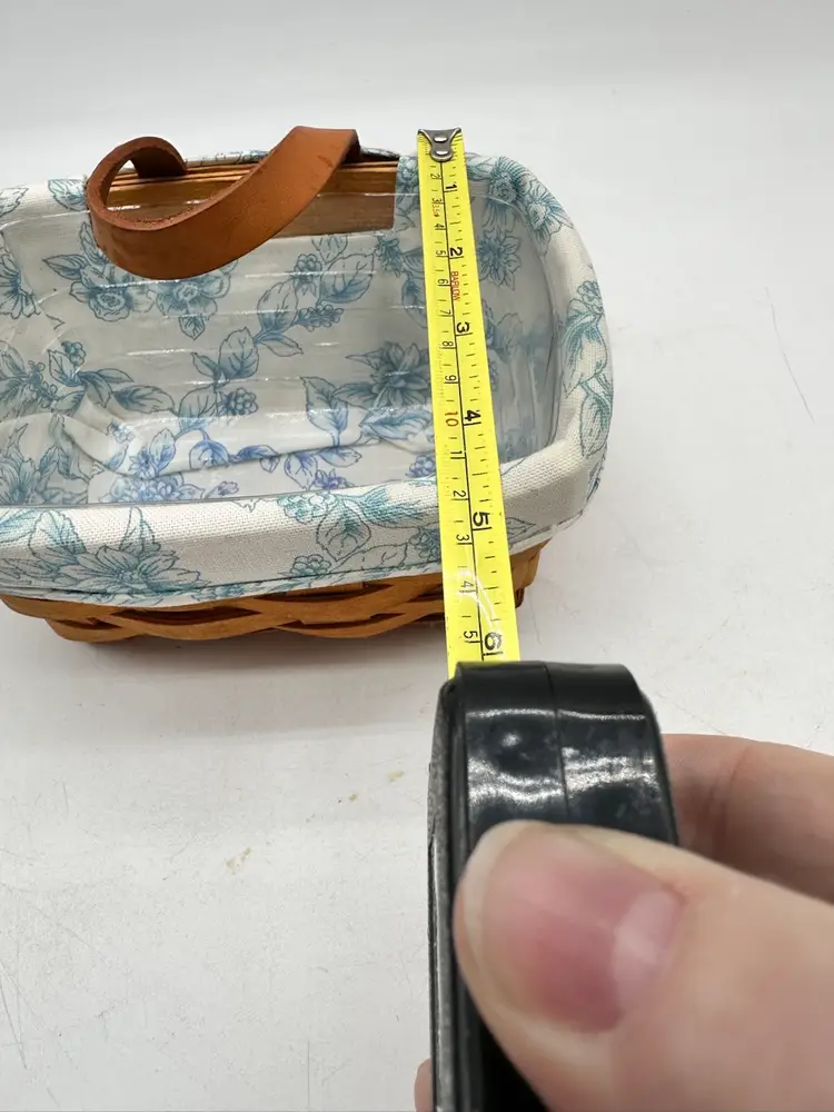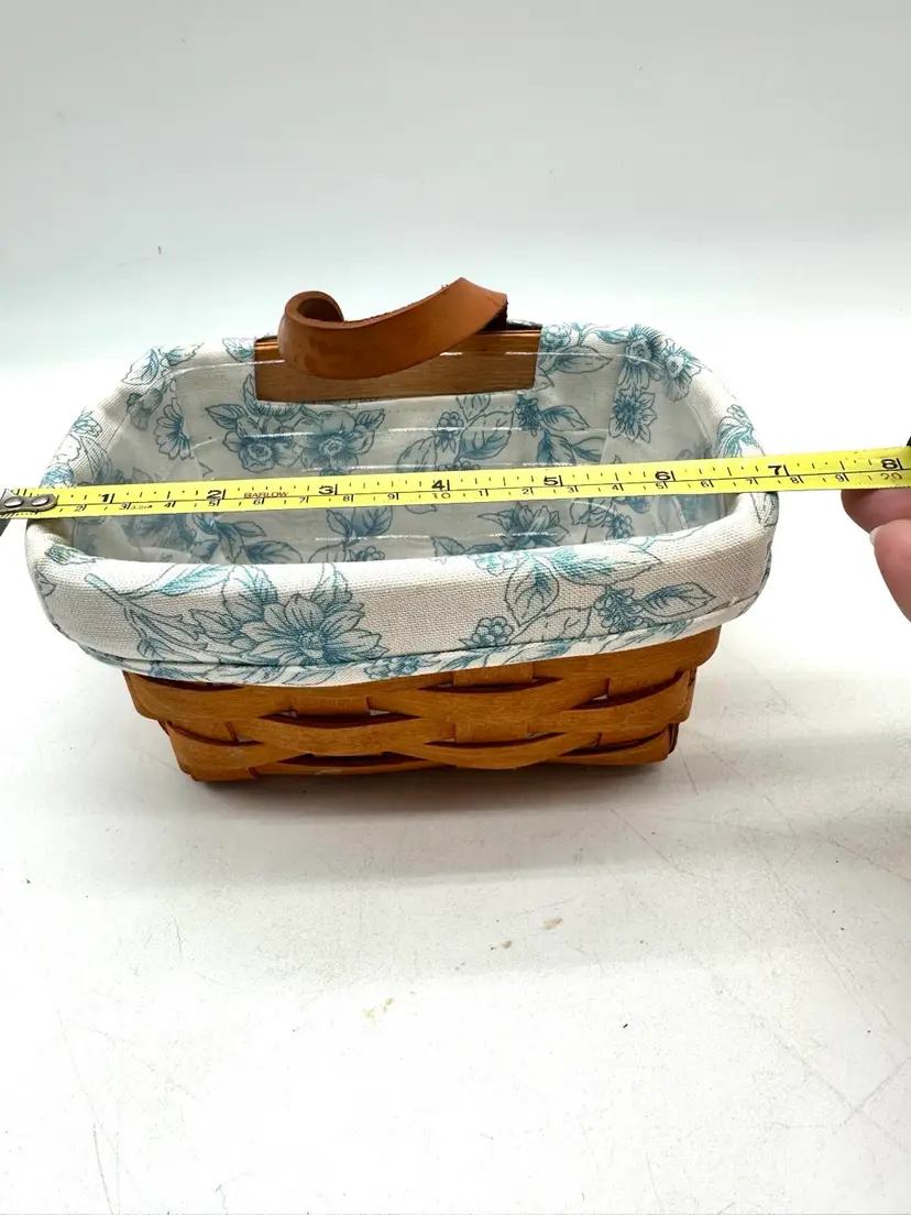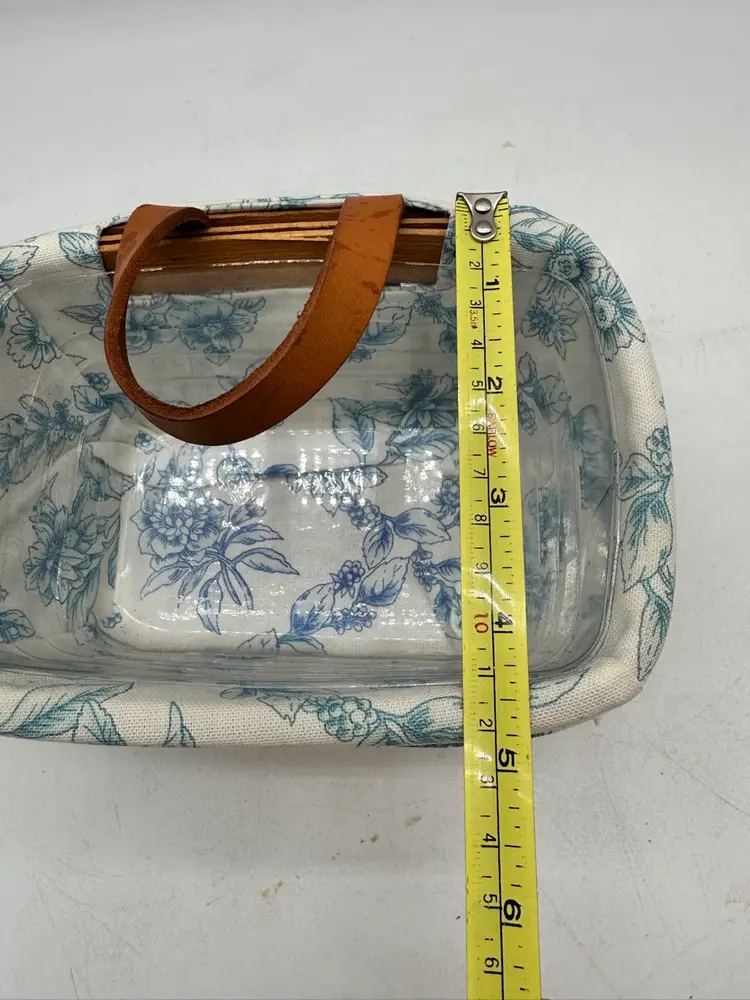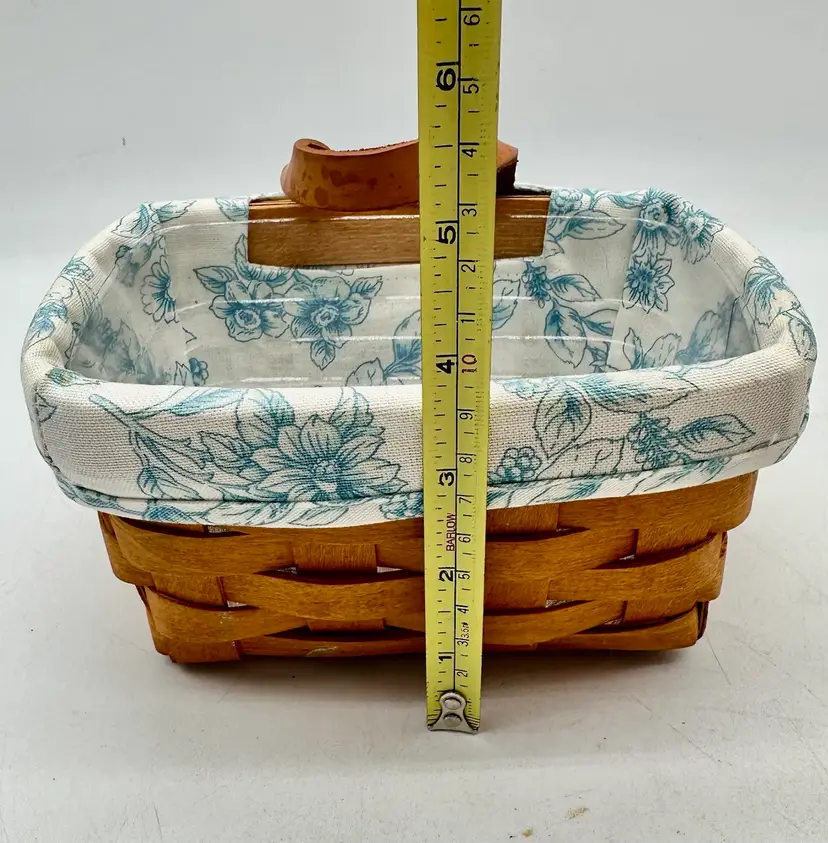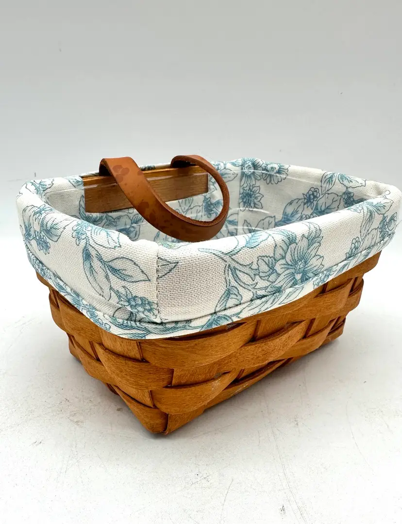 This listing is for a vintage Longaberger basket features a Cottage Trellis design in blue and white floral pattern, making it perfect for all occasions.