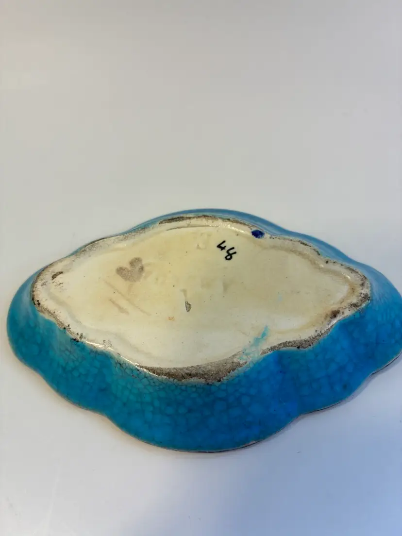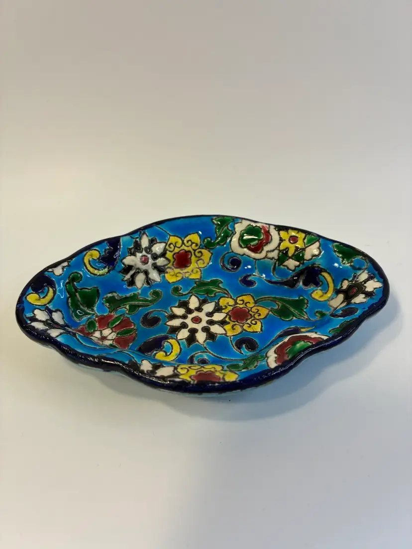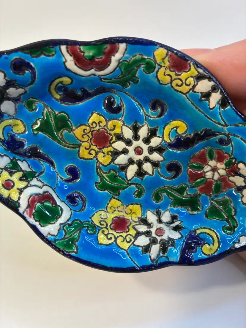 Vintage Longwy Ceramic Trinket Dish With Enamel Glass In A Cloisonné Style 4.5” X 3”