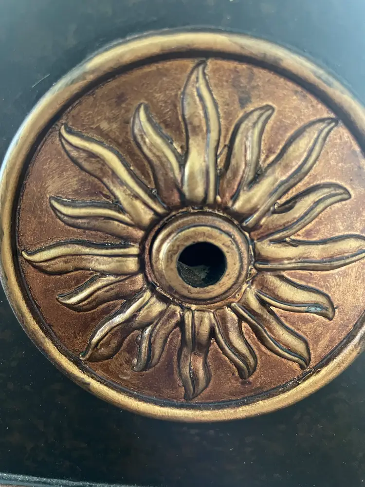 Lovely Vintage Looking Mantel Clock Has Cupids molded around clock face that are copper color. Footed. Quartz movement. Heavy.I believe this is metal. 9 1/2" tall (including handle) x 6 1/2" wide x 4 1/2" deep Is not working now, but I think it needs to be wound. NO KEY. There is a hole on the back that appears to be where a key is inserted. No brand available. Perfect home decorative item.