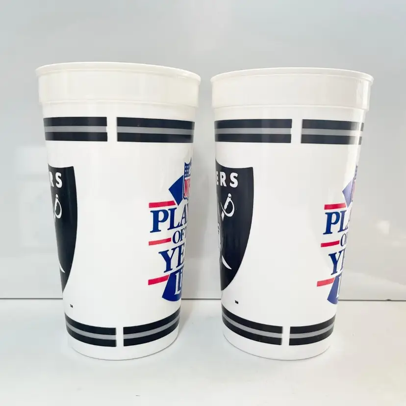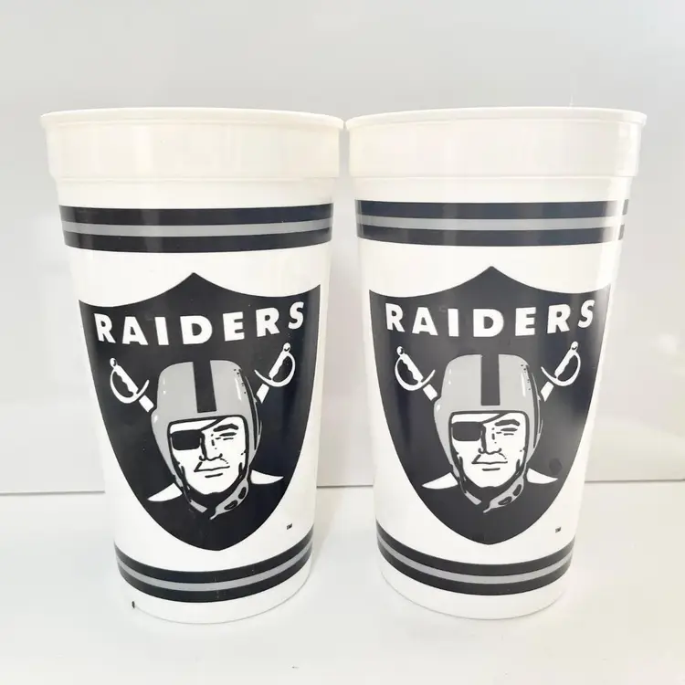 NFL Raiders Cups Miller Lite Beer Advertising Plastic Big Two 28 oz Cups Raiders Logo KIIS FM Radio Promo Condition: Good condition. Clean. Packaged in a plastic sleeve inside a rigid box. Visit my store to see more vintage ephemera, advertising, novelties, gifts, estate sale and yard sale finds https://district.net/u/finderspickerspaper SKU B4