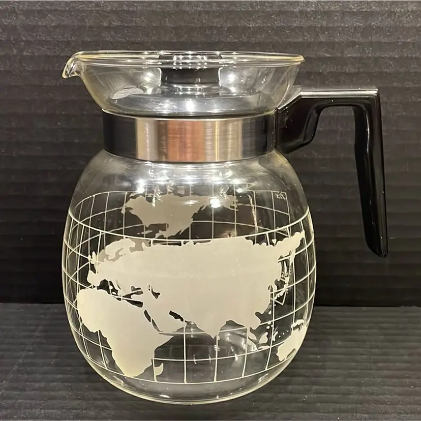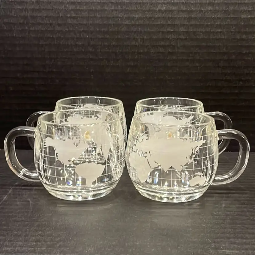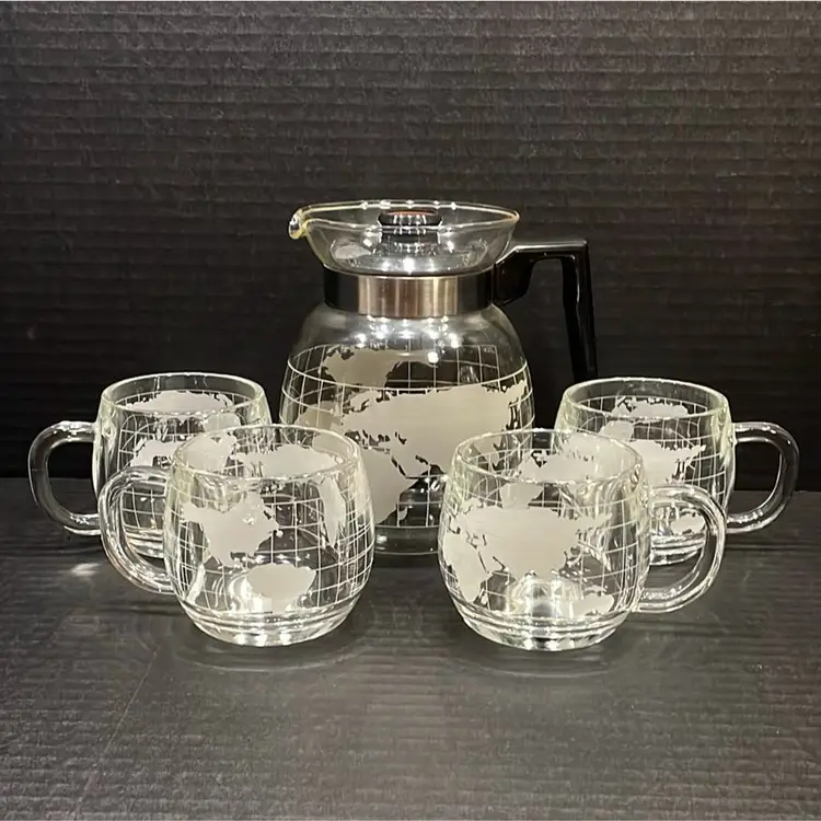This glass Coffee Pot is in great condition. There are 4 cups and they are thicker than the pot. Each cup weighs almost a pound. There are no chips or cracks.