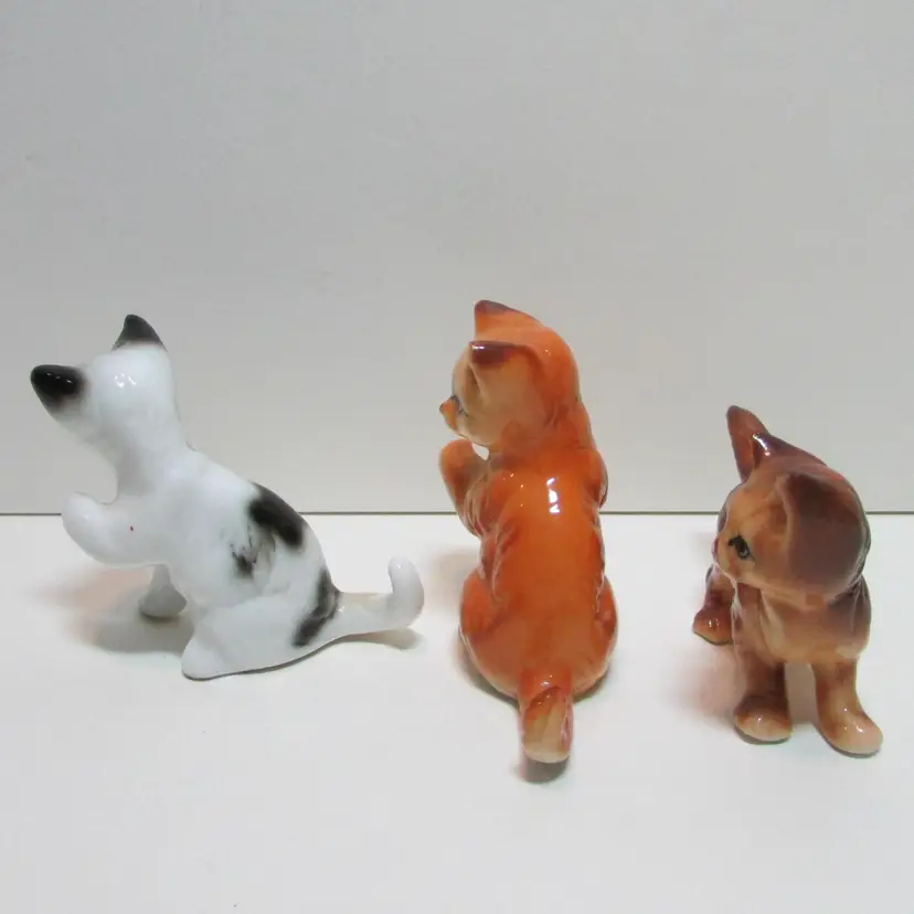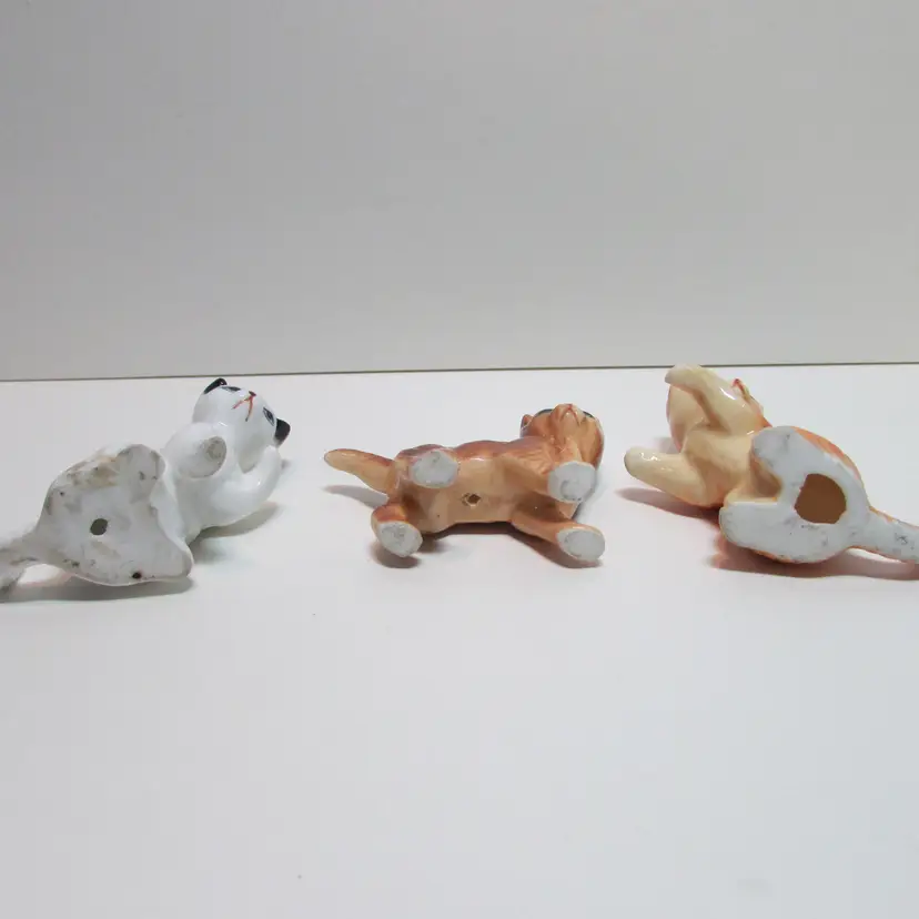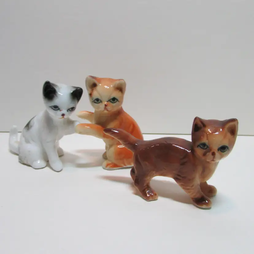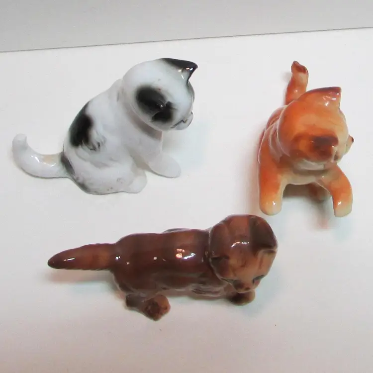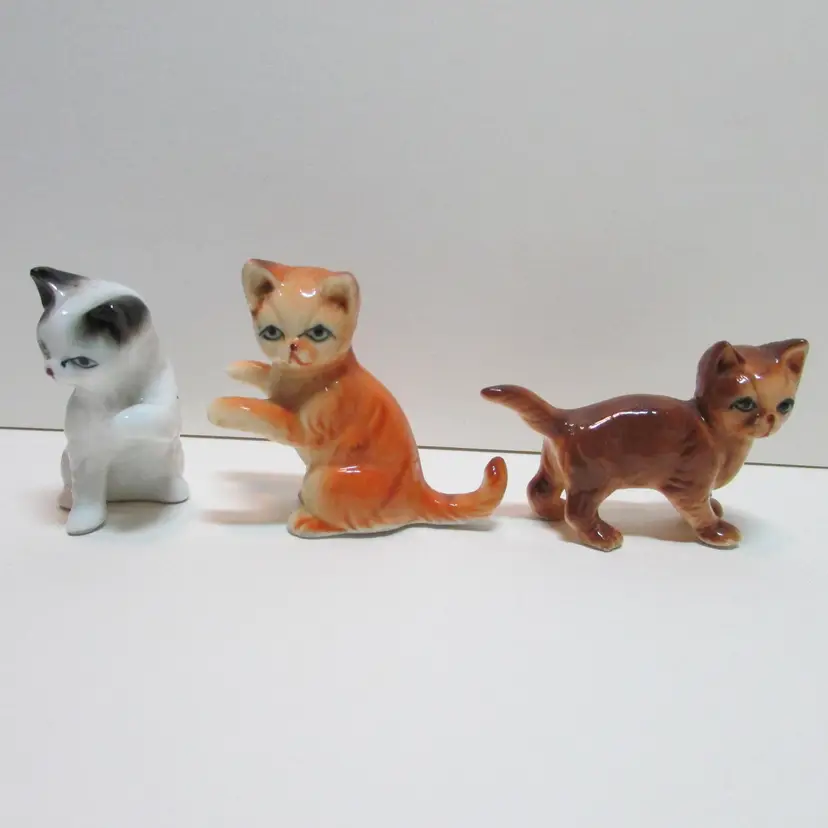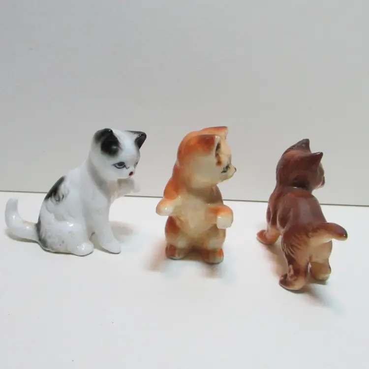 This adorable set is in good condition. The orange cat is about 2" x 2 1/2 x 1", the tan one is about 1 3/4" x 2 1/2" x 1", and the other is about 2" x 2 1/2" x 1". This is shipped from a smoke free home. Thanks for looking! locfb12
