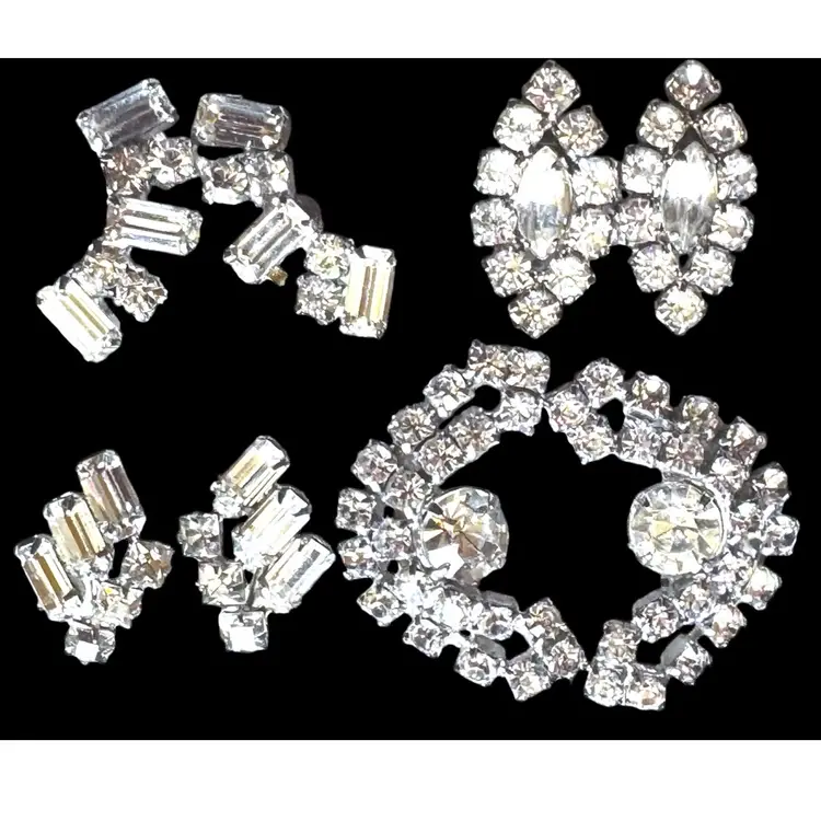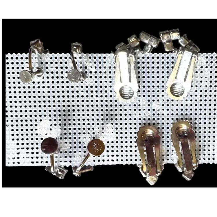 Vintage Lot 4 Clean Sparkling Rhinestone Clip & Screw Back Earrings -