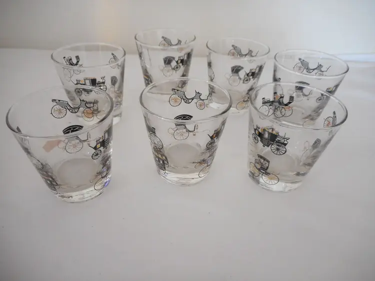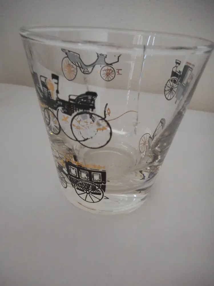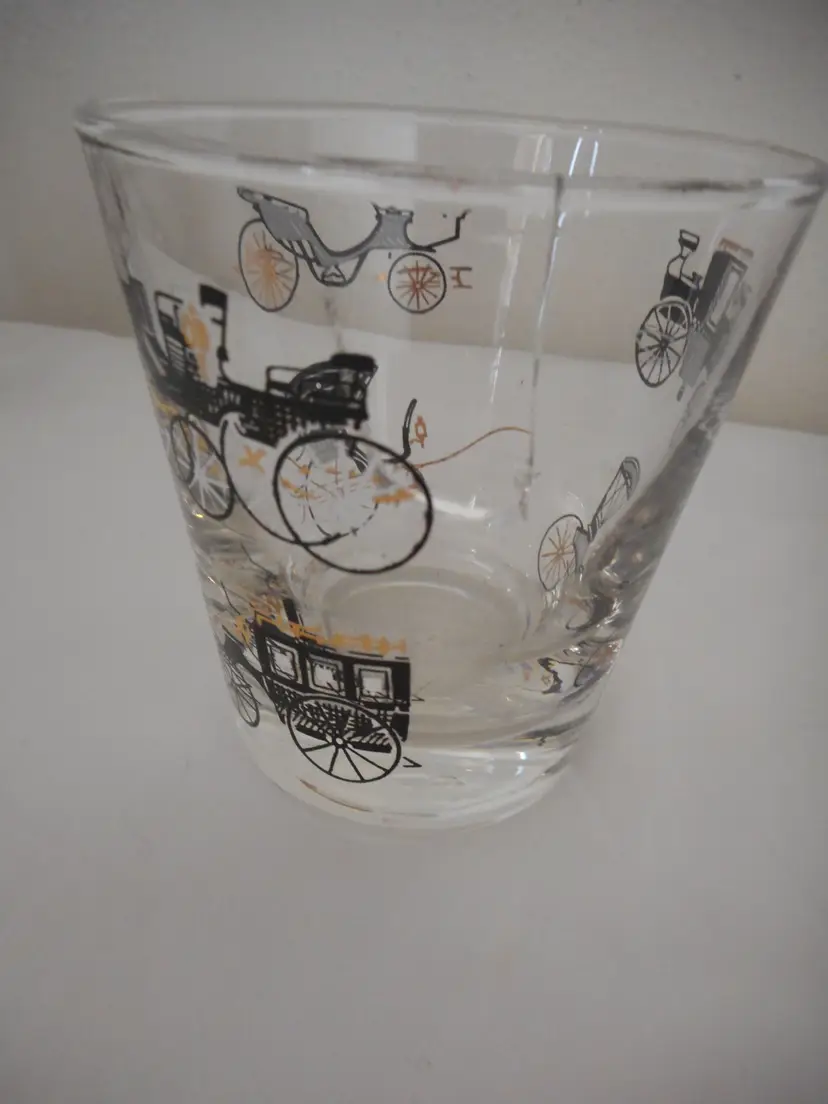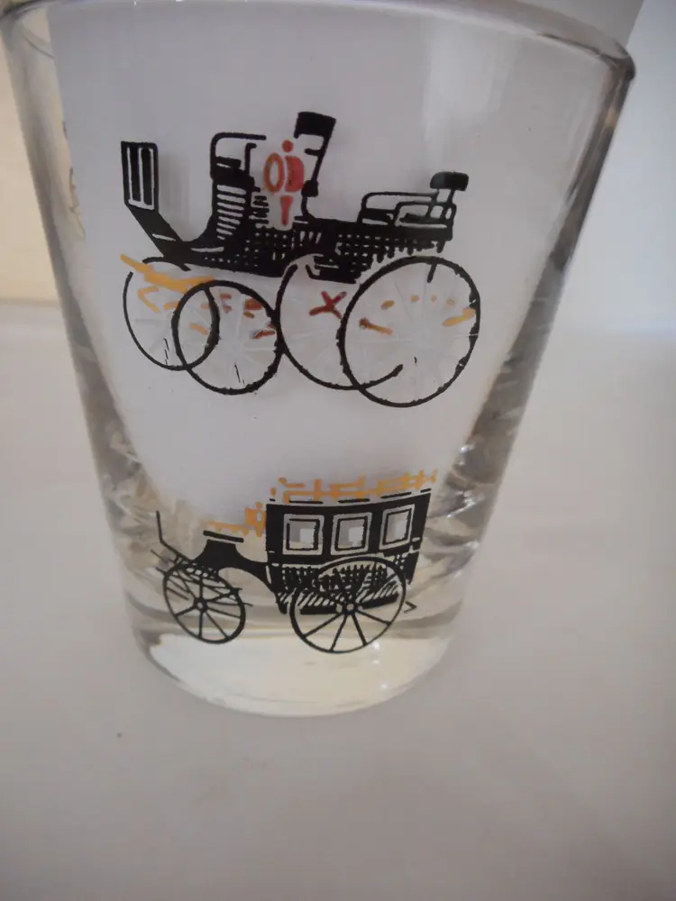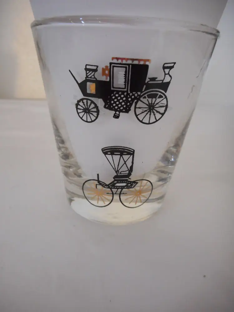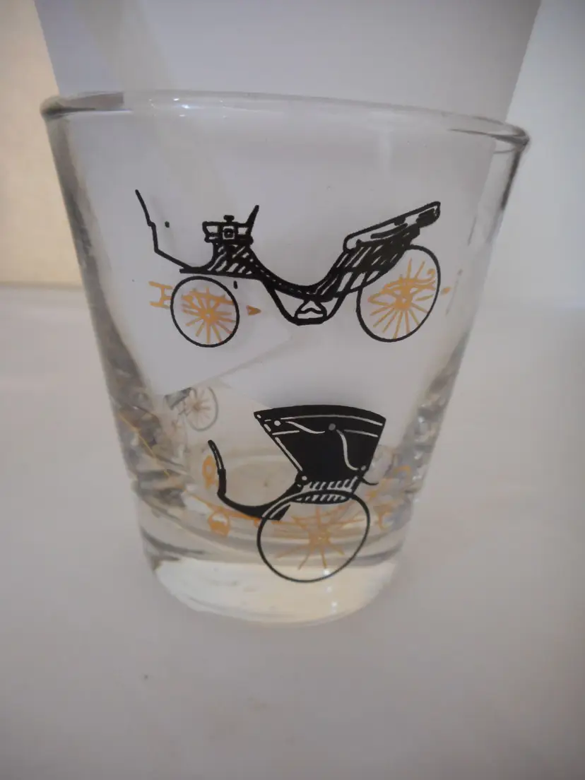 Lot of 6 Vintage Libbey Tumbler Glasses Black Gold Horseless Carriages Car - Estate Find