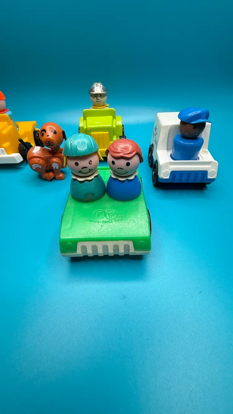 Vintage Lot Of 12 Fisher Price Little People Figures Vehicles Dog Toys 70s-80s. Wear and tear from use/play. There are nicks and scratches. No broken or missing pieces on the figures or vehicles. Little blonde girl has a wooden body, the others have plastic bodies. Please see photos for condition. If you have any questions, please feel free to ask. Please review all photos and the description for condition of item(s), PLEASE NOTE: Due to lighting the color of items may vary! There is not an easy way to get the exact color match when taking a photo. Please know that we do our very best to describe and photograph all known issues or problems in a listing. All items come from a smoke free home.