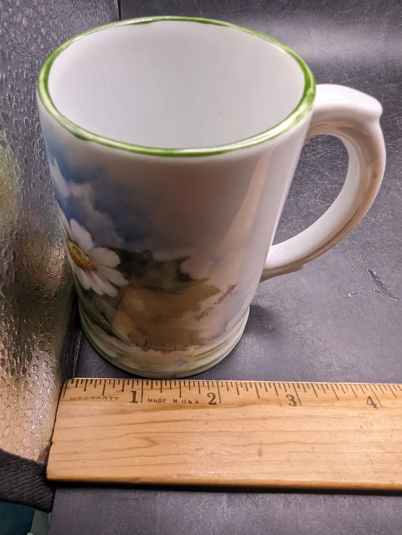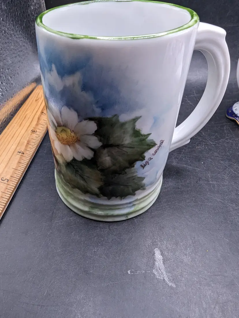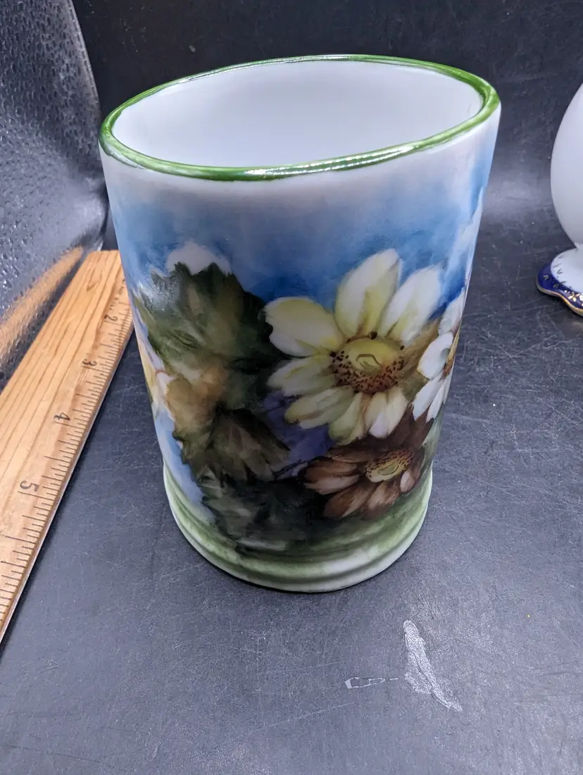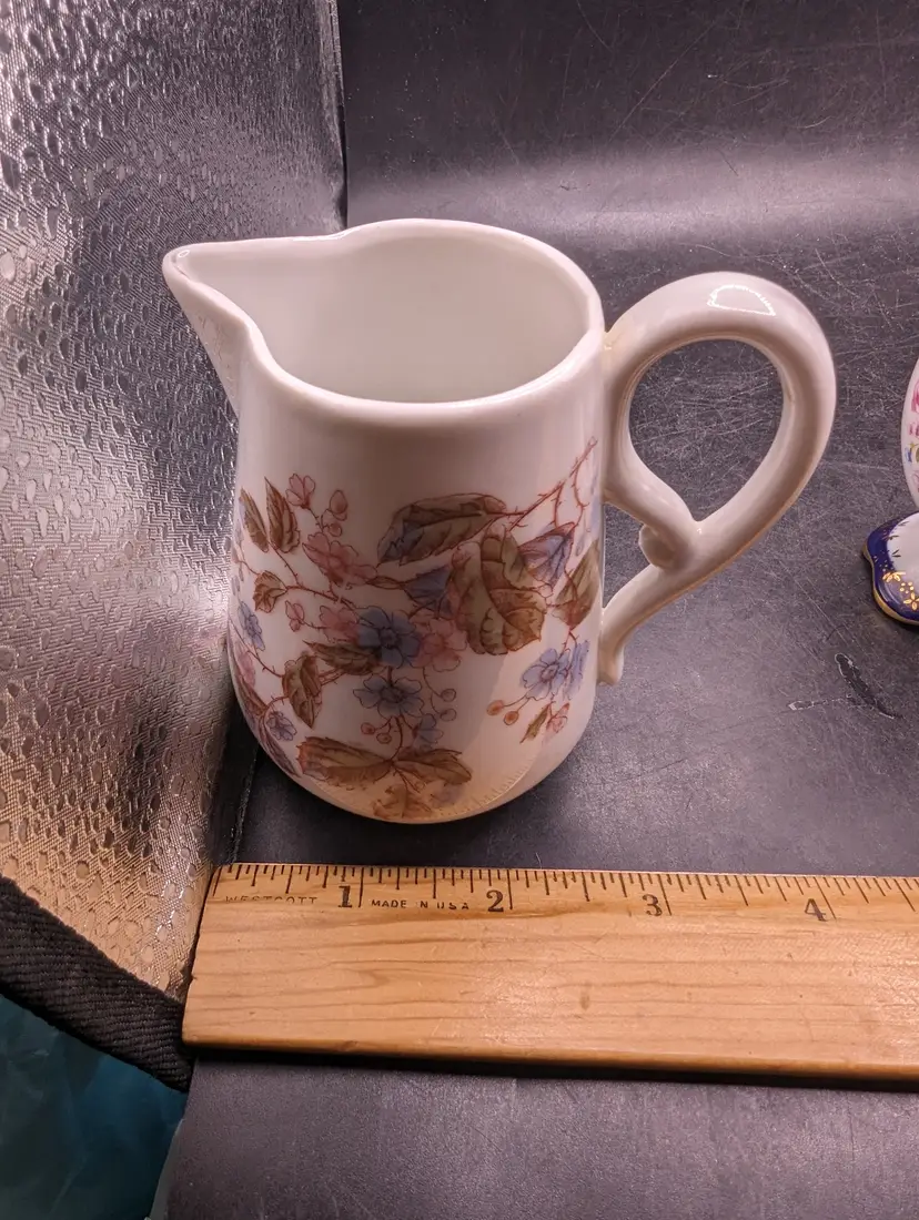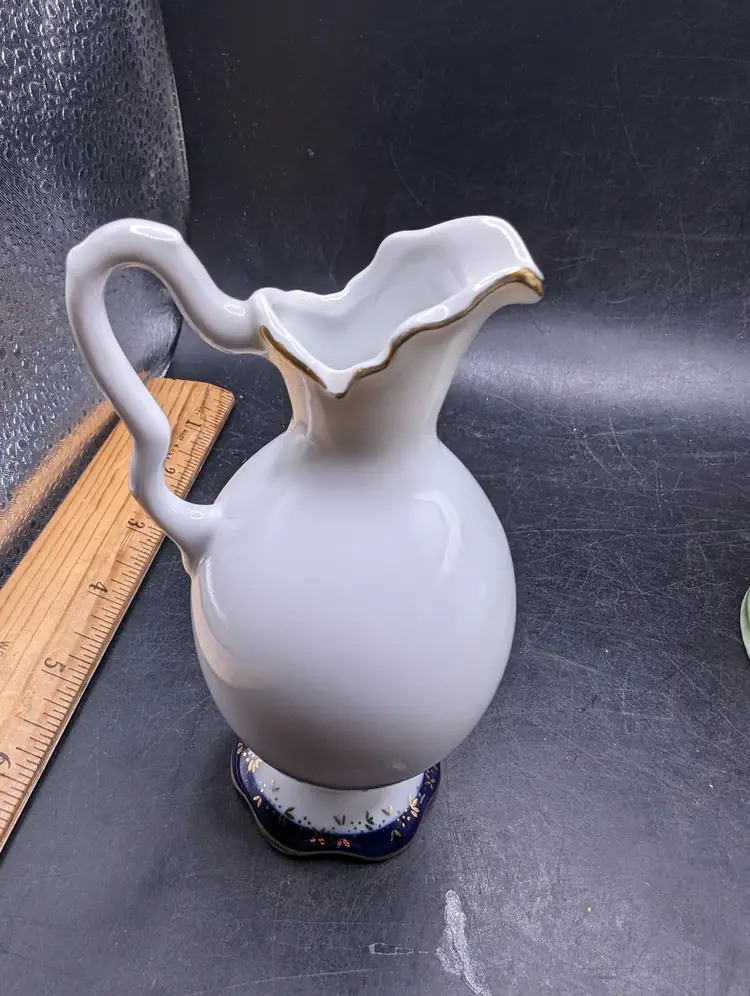 This is a lovely Vintage Lot of 3 Porcelain Pieces Two Creamers and One Cup. The two creamers are marked Japan. The cup seems to be hand painted and signed on the front. Please see all pictures for condition and measurements.