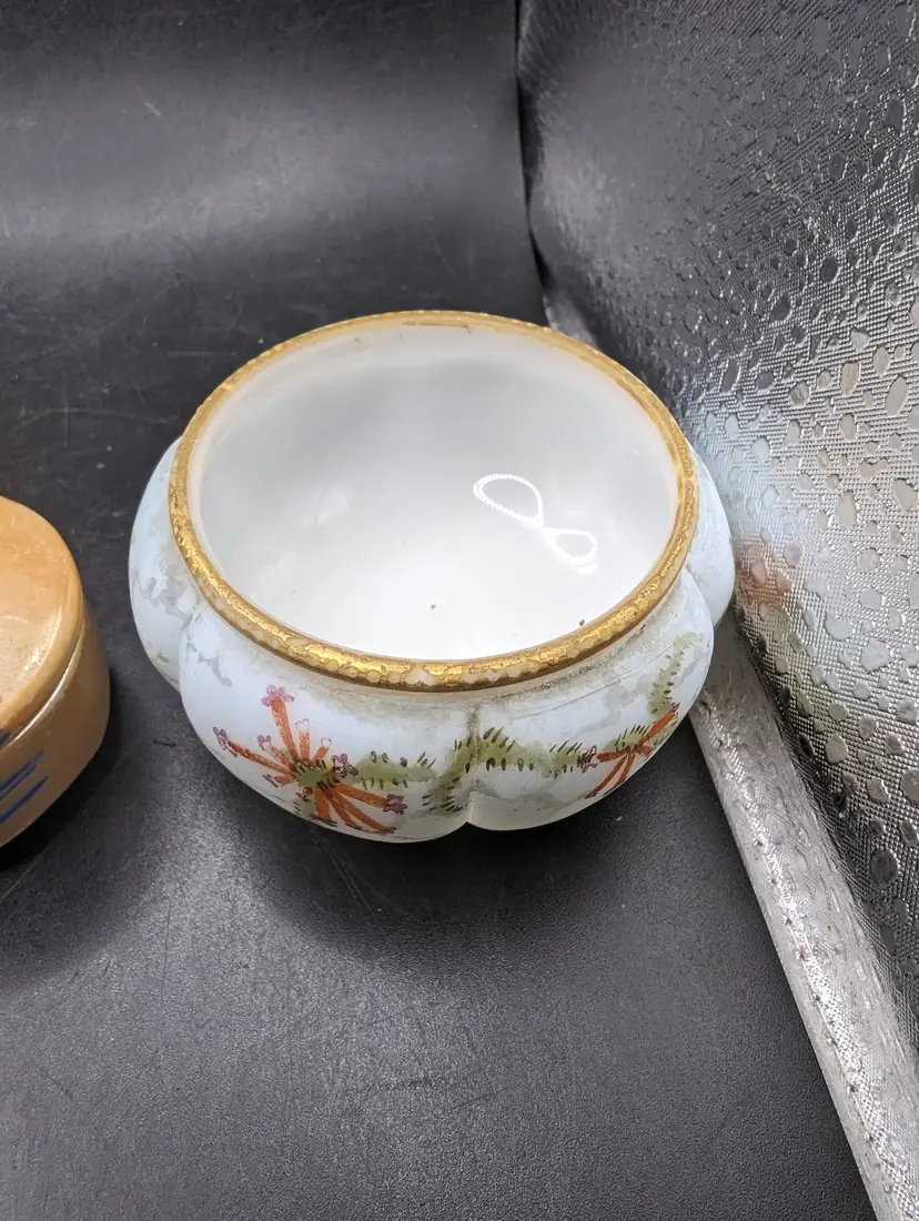 This is a fantastic Vintage Lot of 4 Asian Trinket/ Salt Cellars Dishes. No chips or cracks. Please see all pictures for condition and measurements.