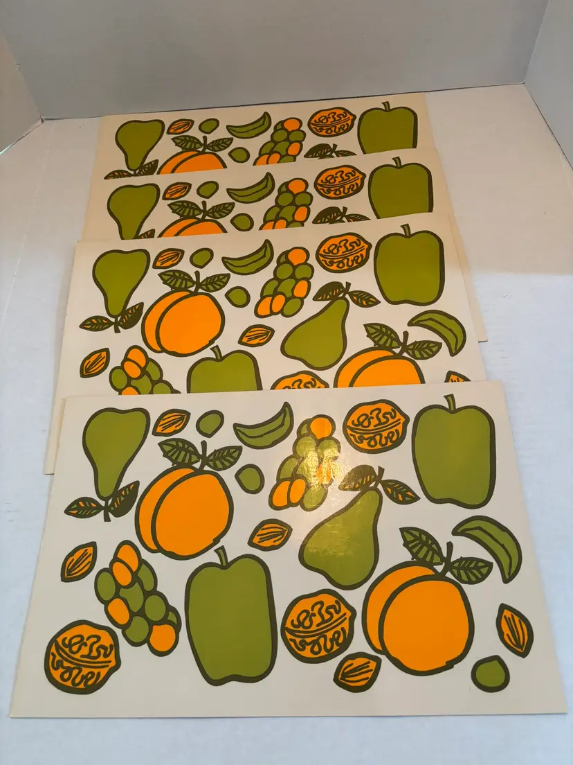 This vintage lot of 4 vinyl placemats features a fruit-themed design with a colorful multicolor pattern, making them perfect for all occasions. The rectangular placemats have a cork backing for added durability and protection of surfaces. Made of washable vinyl material, these original placemats require hand washing for easy care. Ideal for collectors or anyone looking to add a touch of retro charm to their dining table, these placemats are both functional and decorative. SOME STAINING FROM USE ON THE BACK