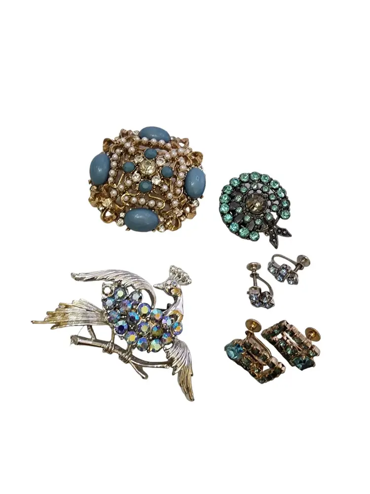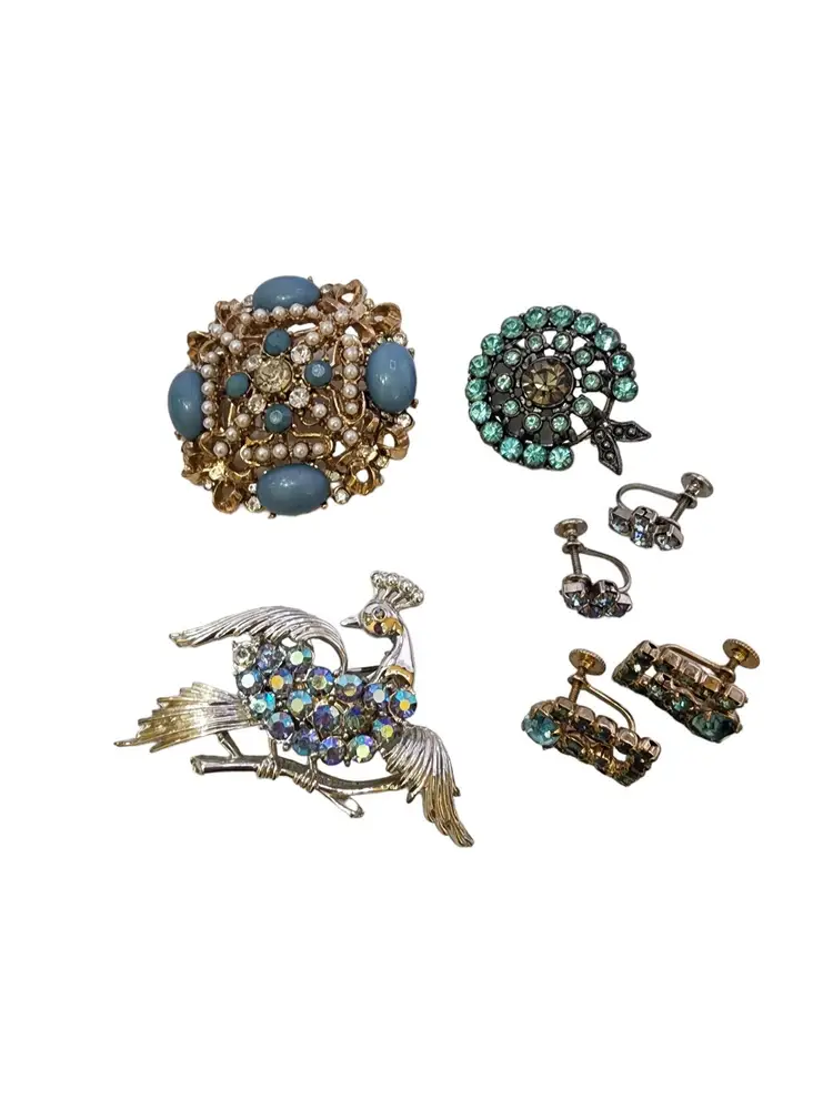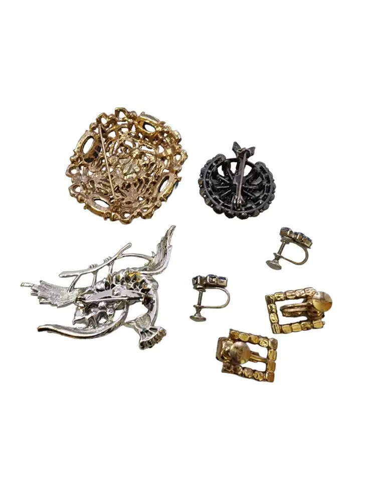 Vintage Lot Of 5 Assorted Brooches And Earrings (A5017)