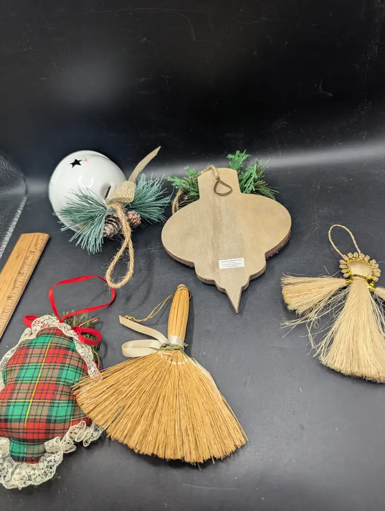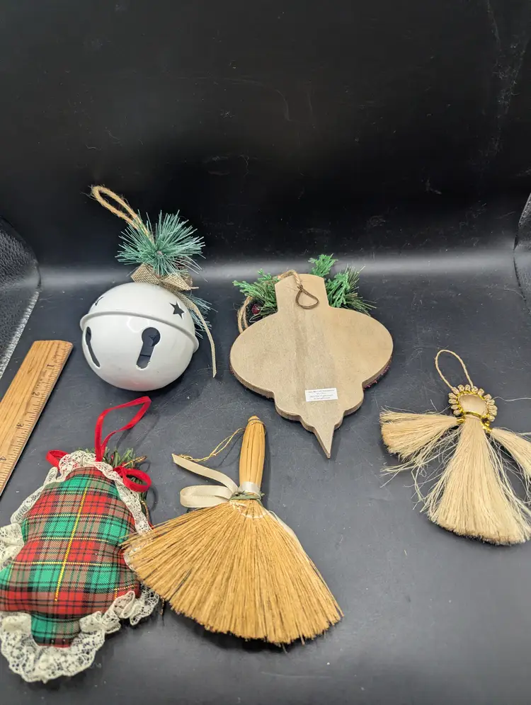 This is a very nice Vintage Lot of 5 Decorative Christmas Ornaments Homemade and Store Bought. Please see all pictures for condition and measurements.