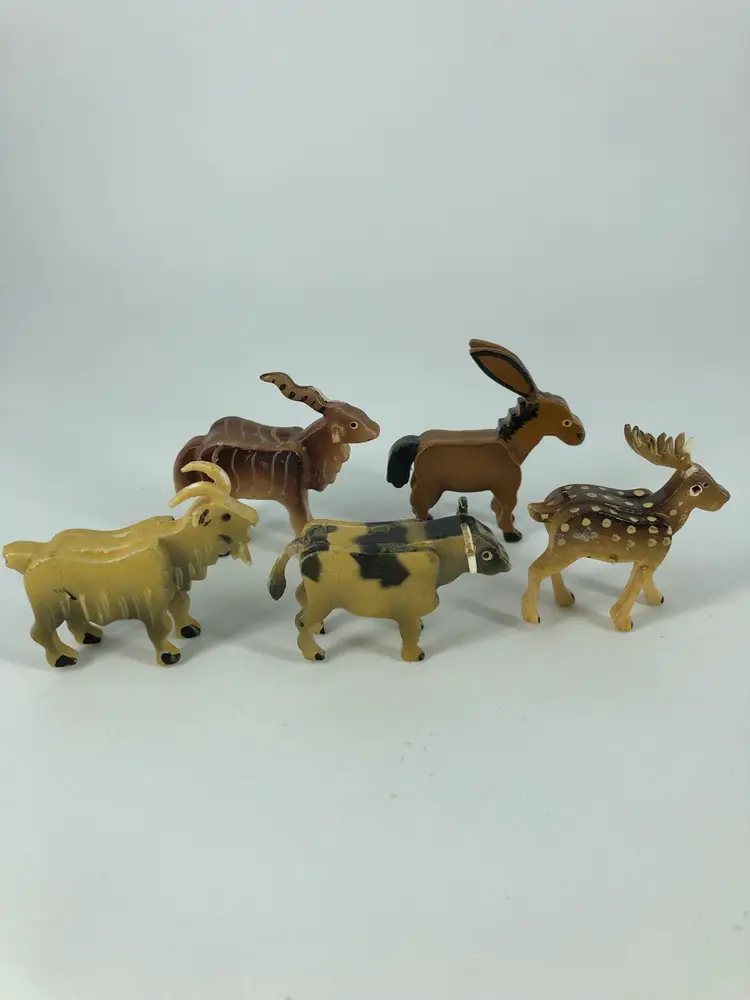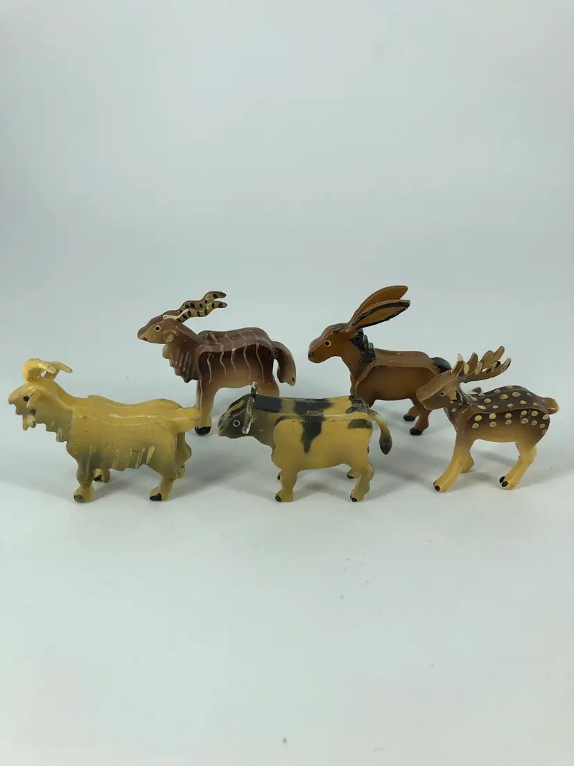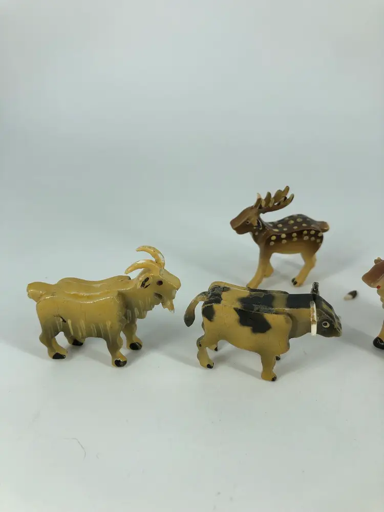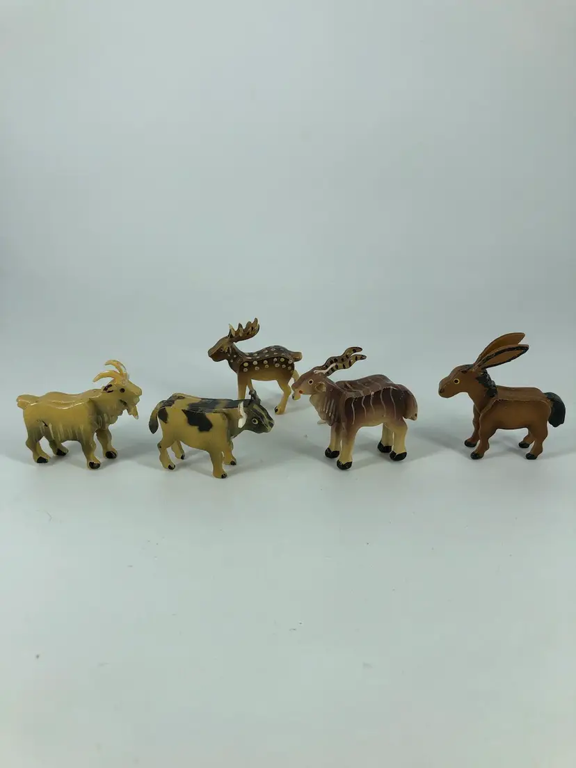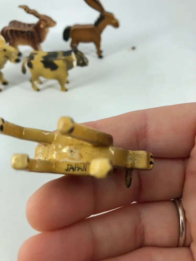 Comes with 5 different animals Deer, donkey, goat, antelope, cow The deer is missing an ear but it is in with the animals just needs fixed All are marked Japan