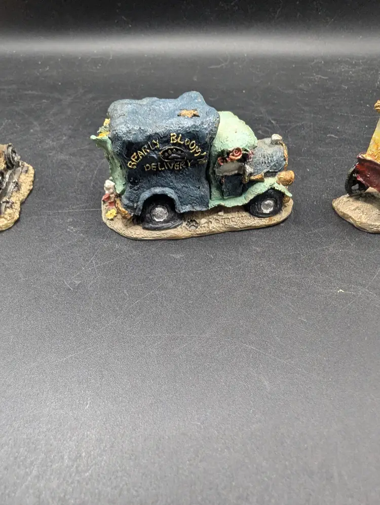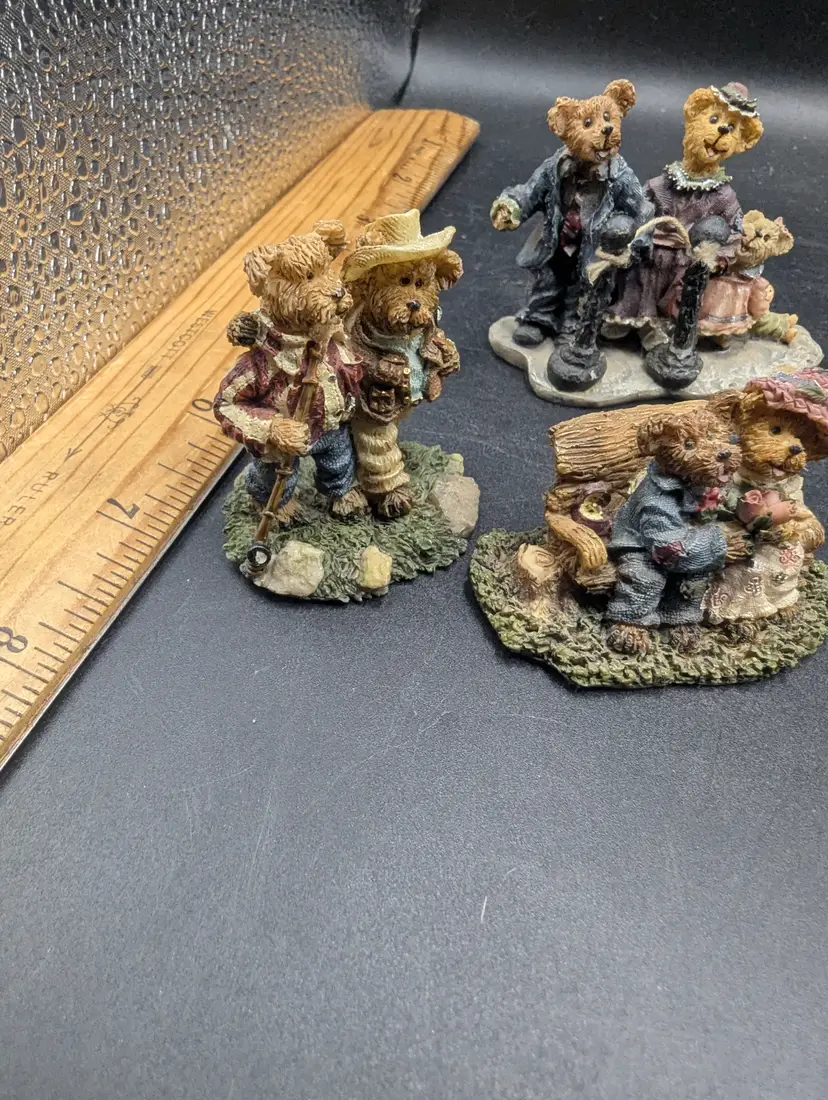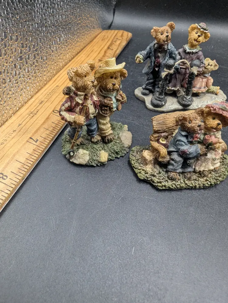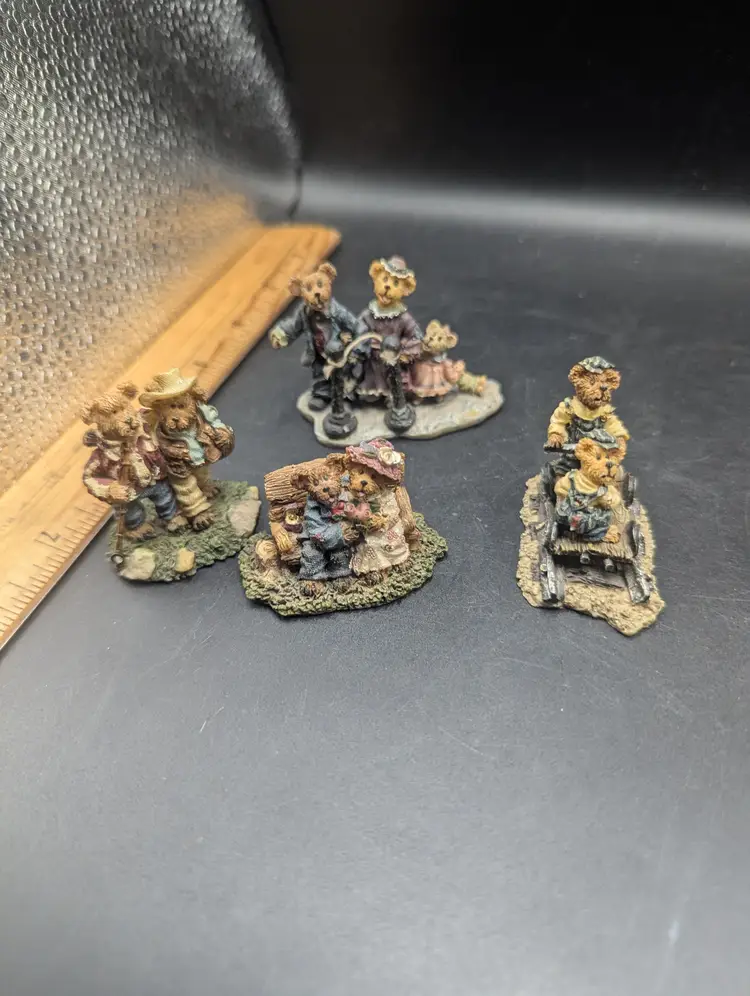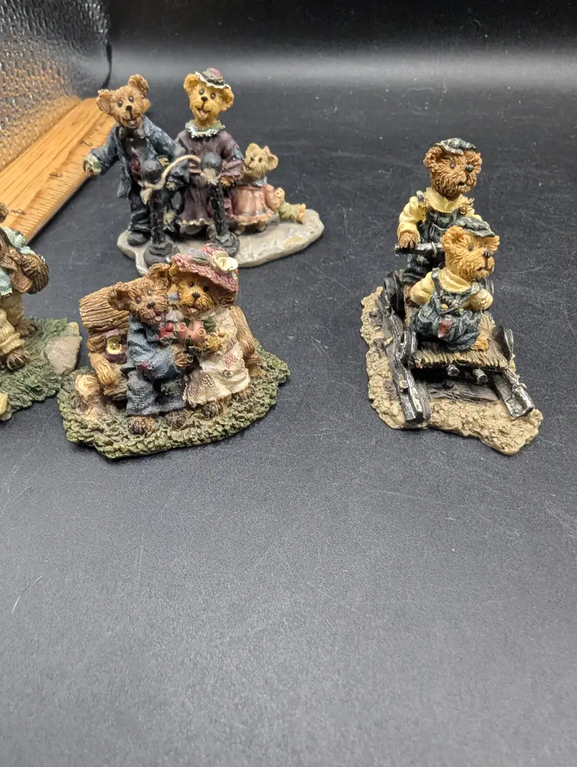 This is a fantastic Vintage Lot of 8 Boyd's Village Miniature Figurines. It includes Stewart & Martha, Myron & Thayer, Push & Pulley, The Robearsons, Bloomin Idiots Delivery, Stubby, Post Pusher and Ellivro's Popcart. The only damage that I see is to the Popcart as seen in last picture. Please see all pictures for condition and measurements.