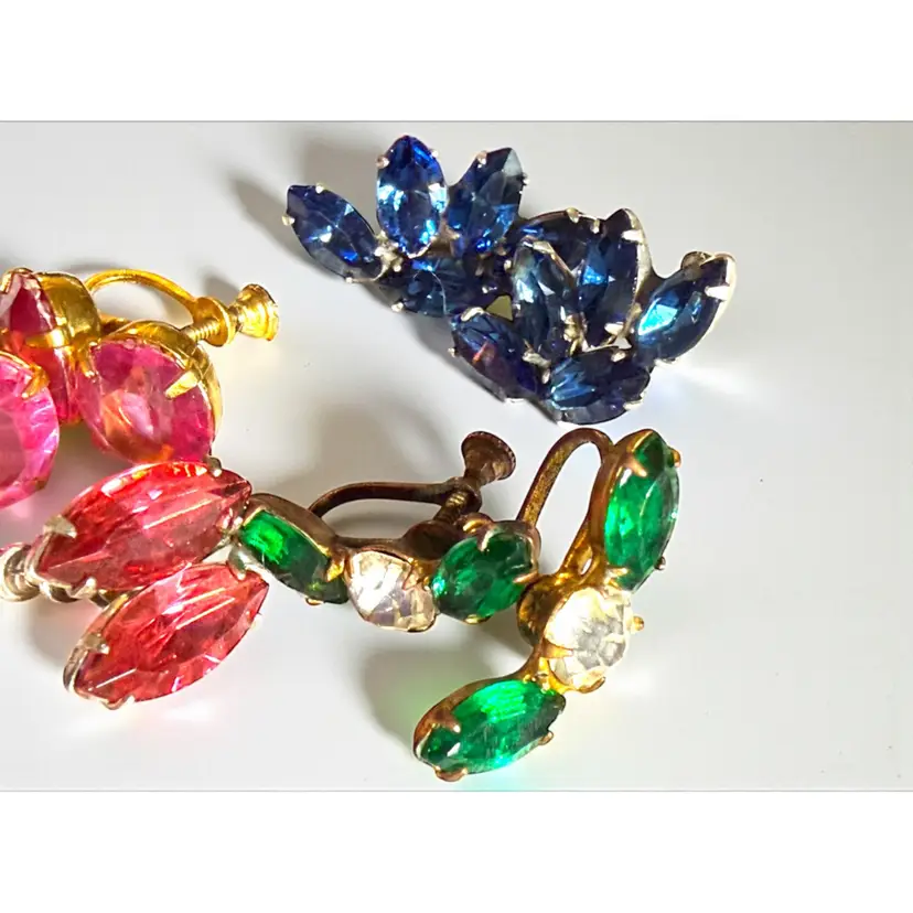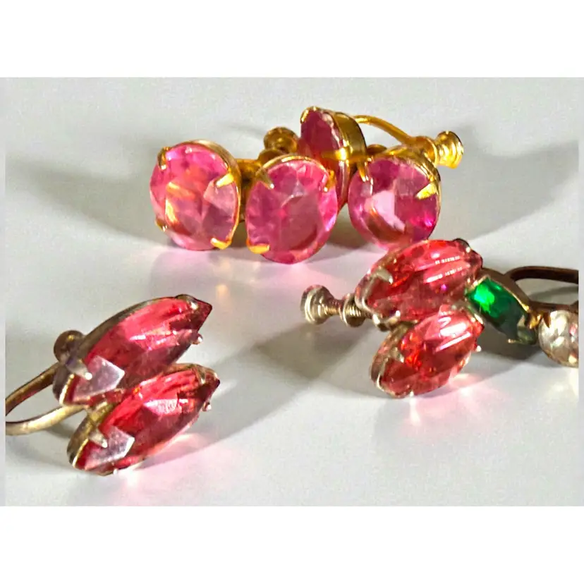 Vintage Lot Of Sparkling Rhinestone Screw Back Earrings