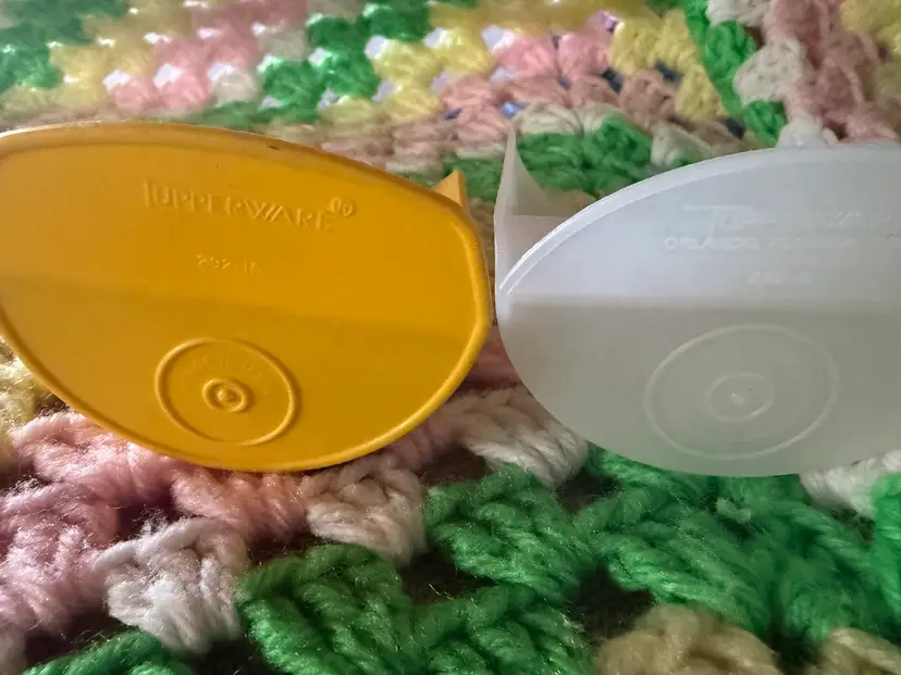Fabulous condition lot of two Tupperware Scoops. Harvest Gold and clear, no stickyness on either scoop, ready to add some style to your kitchen! Flour, sugar, puppy chow, kitty food, granola, all the snacks!