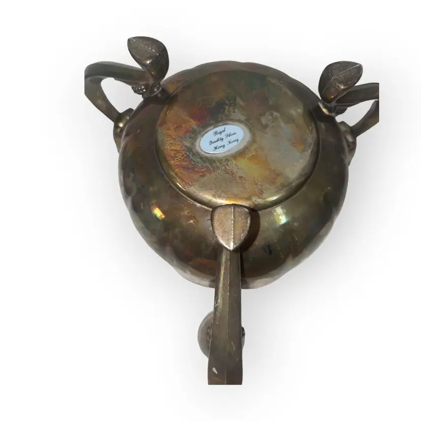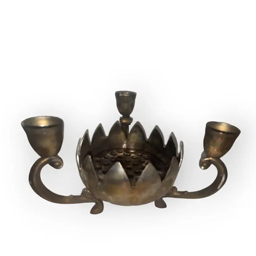 Vintage Lotus Flower Bowl, silver plated, 3 candle holder 5” Tall.