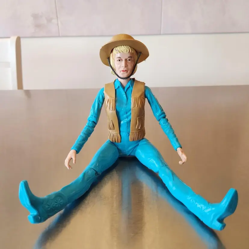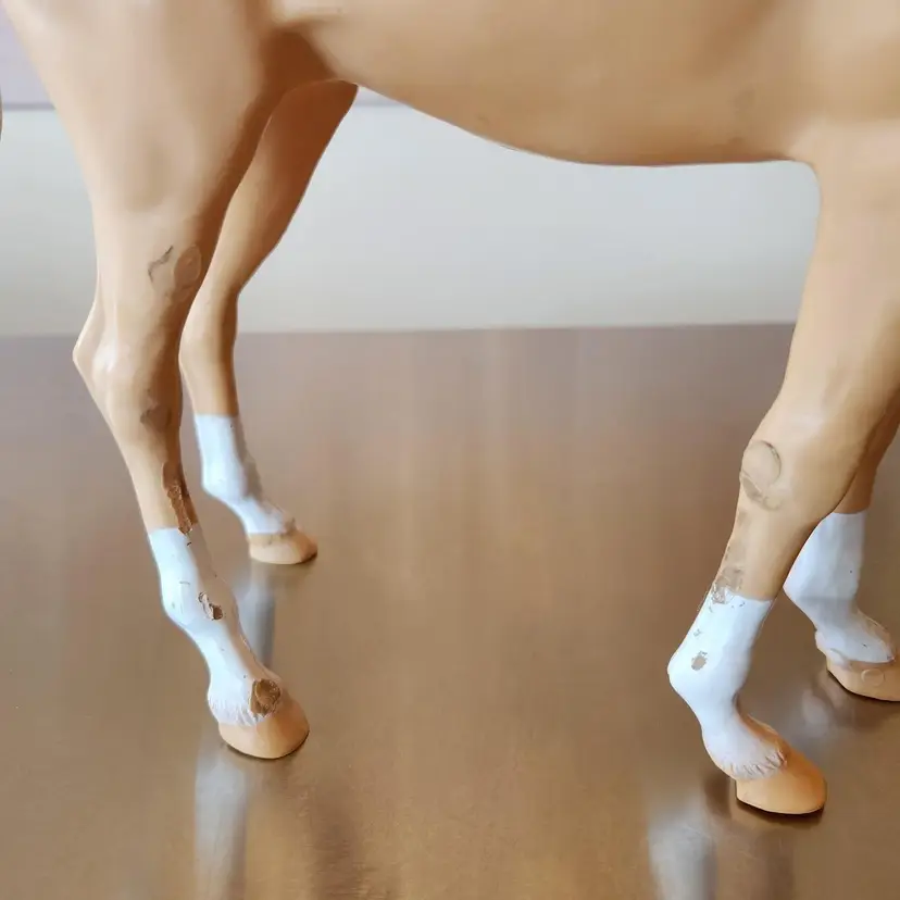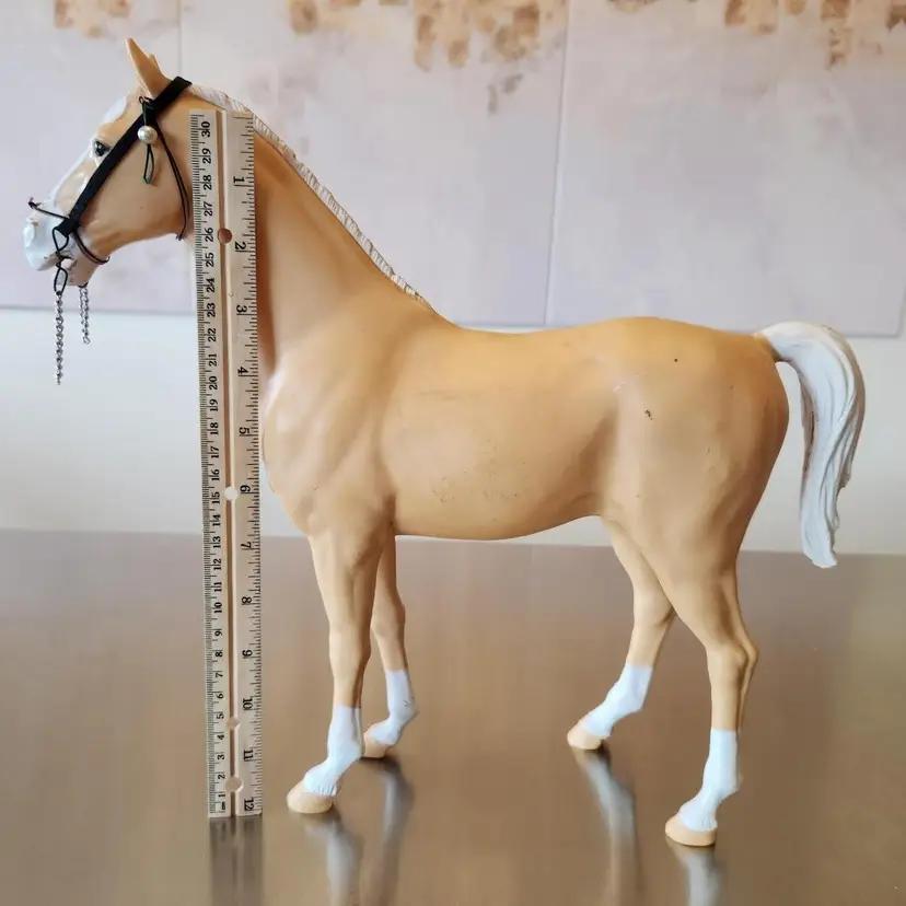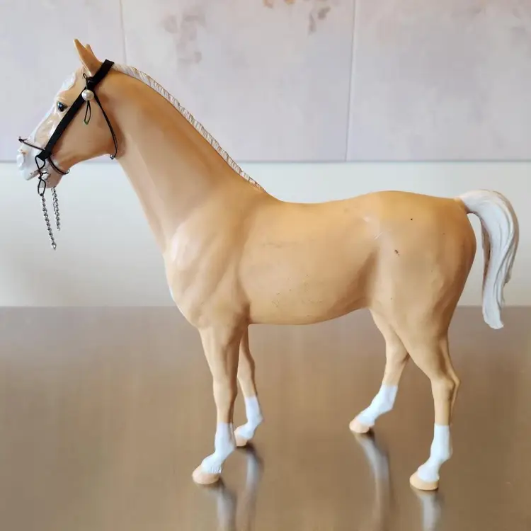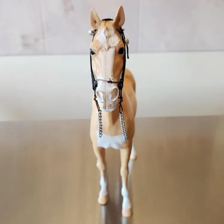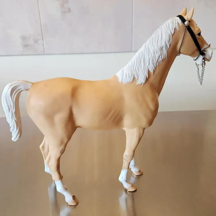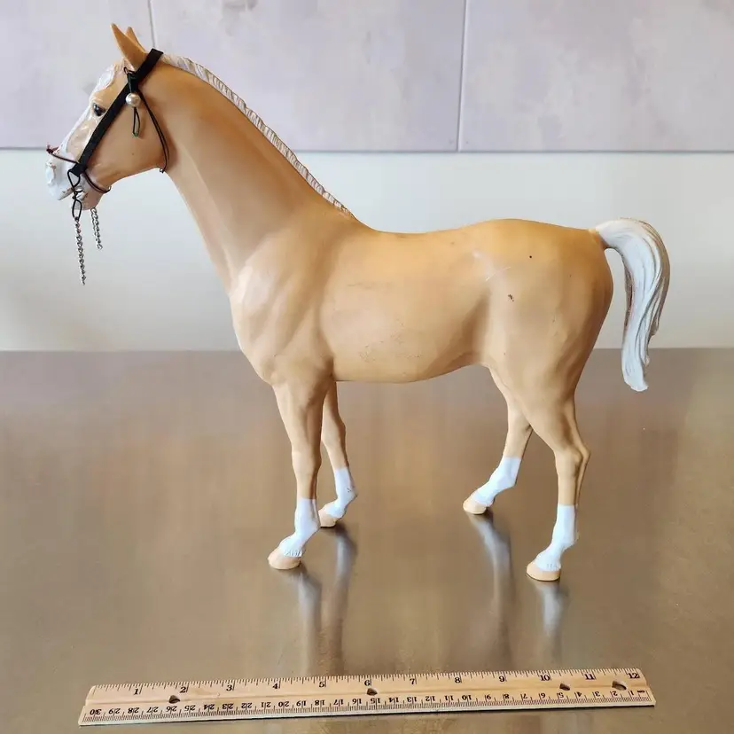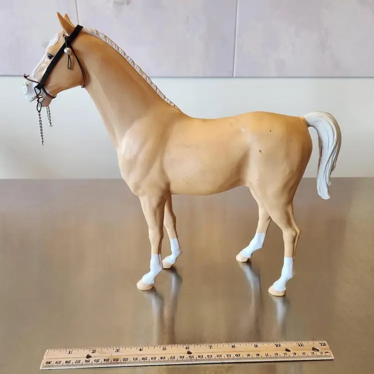 This auction lot is for a Jane West Doll with her vest and hat. A palomino Thunderbolt Horse and a brown Flame horse with tack. Please see all the pictures for their condition. Pictures show the paint wear, scratches, scuffs and some melted areas on Thunderbolt. All-in-all for their age these pieces are in pretty good condition.