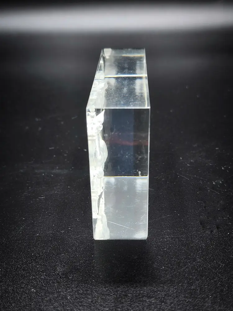 Unsigned, 2 1/2 tall, 3 1/2" wide. Condition: some scratches, one more visible on the back.